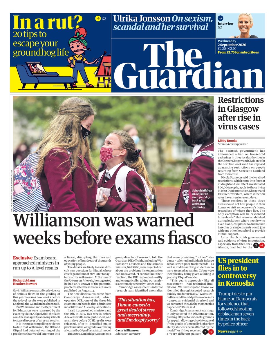 According to The Guardian, Education Secretary Gavin Williamson was offered evidence of serious flaws in the grading of this year’s exams two weeks before results were published in England.