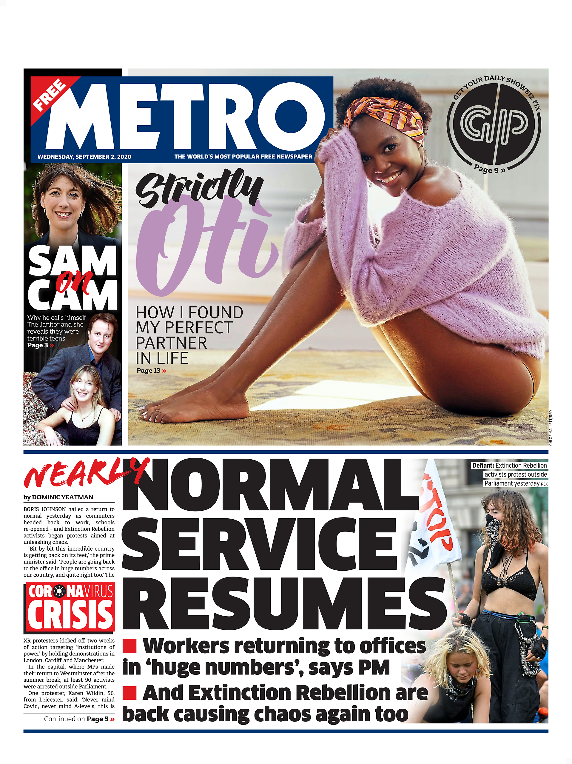 The Metro leads on Boris Johnson hailing a return to (nearly) normal as commuters headed back to work and schools re-opened.
