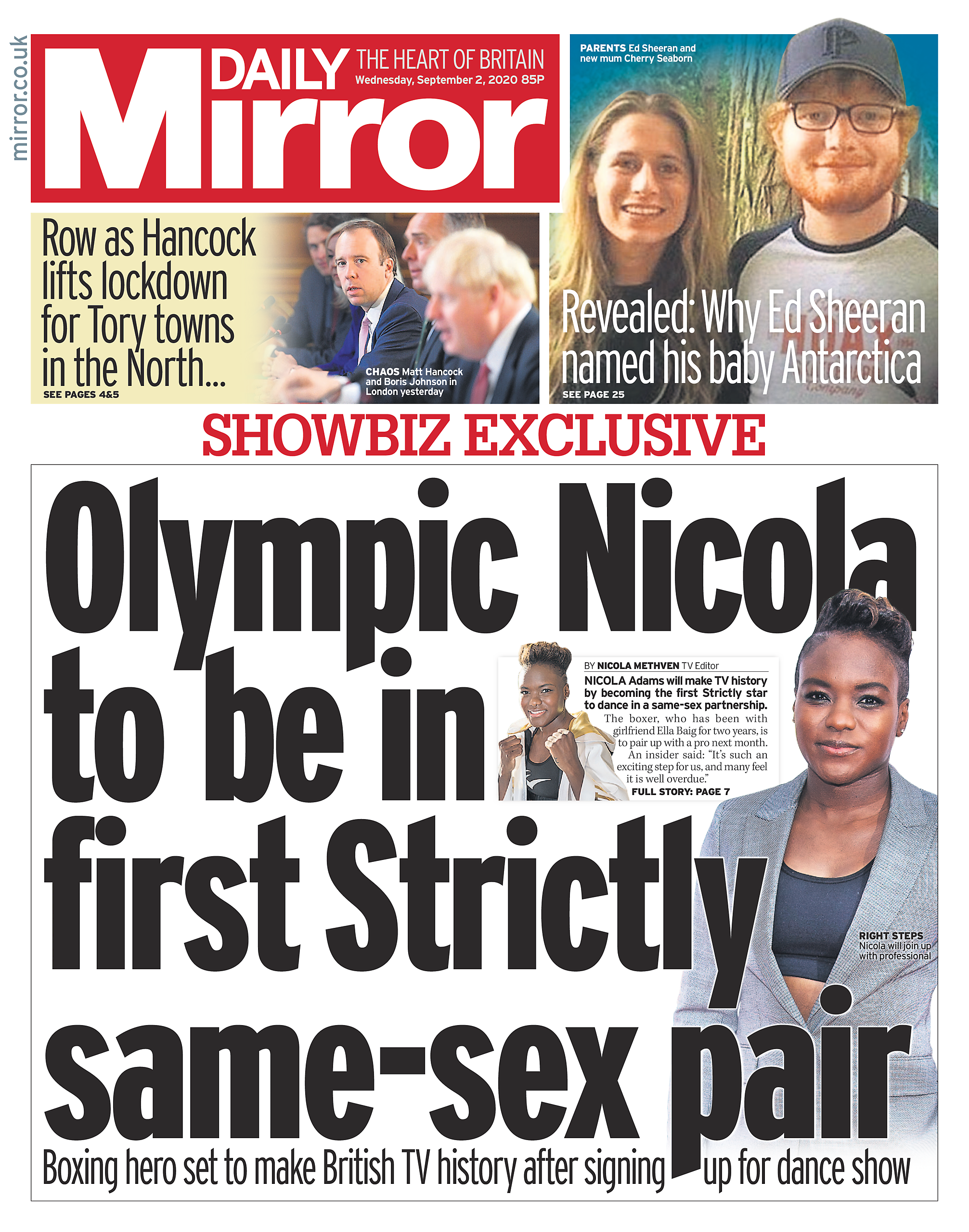 Boxing champion Nicola Adams will become the first Strictly Come Dancing competitor to dance in a same-sex partnership, the Daily Mirror reports.
