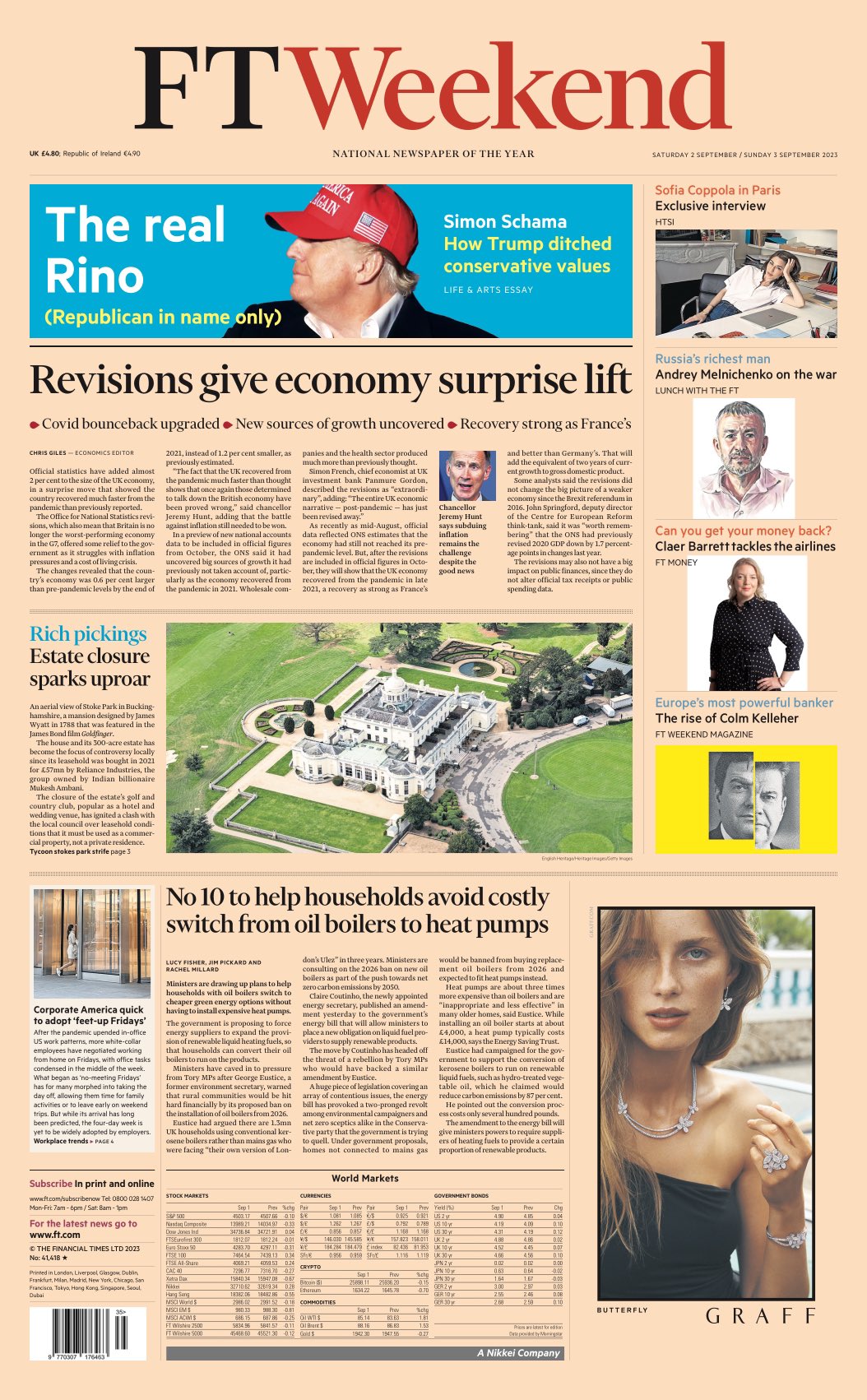 The FTWeekend reports that the UK economy has recovered much faster from the Coronavirus pandemic than previously thought, with the Office for National Statistics revising the size of the economy by almost 2%.