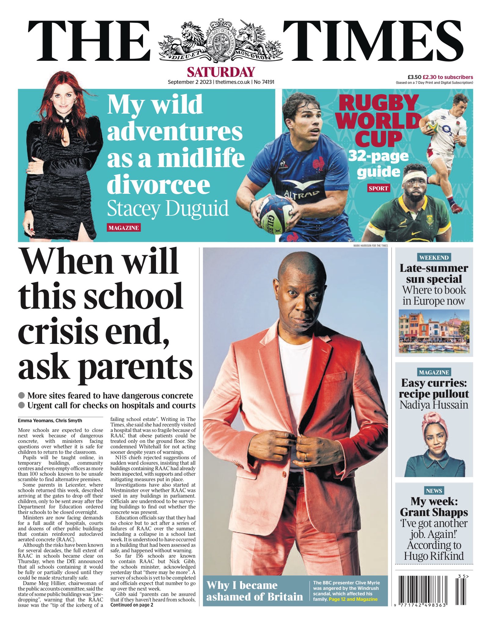 The Times reports that more schools are expected to close next week due to concerns about the use of RAAC in school buildings in England.