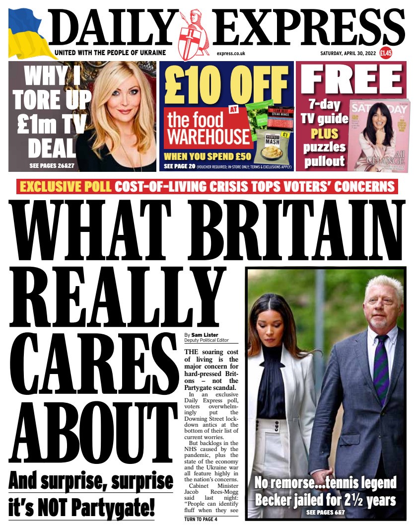 A poll for the Daily Express found the soaring cost of living is the biggest concern for hard-pressed Britons, not the Partygate scandal.