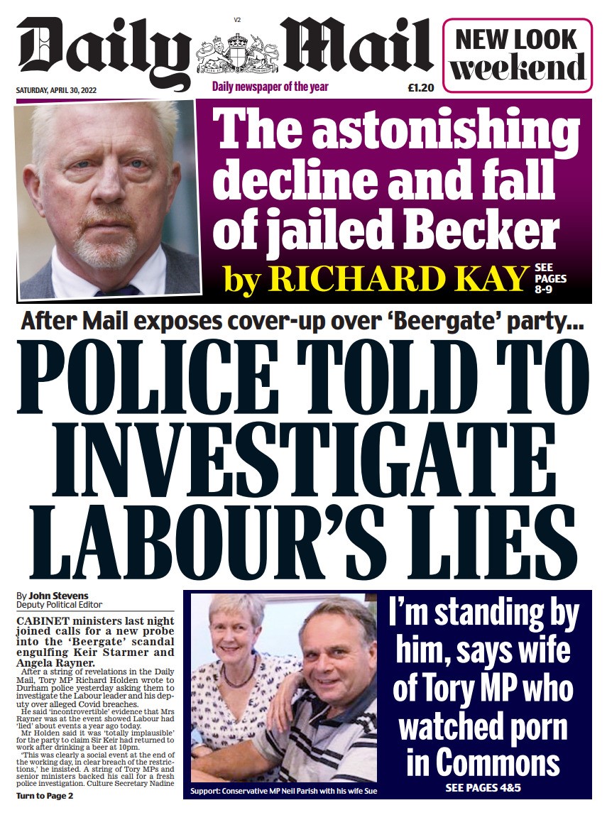 The Daily Mail reports that cabinet ministers are calling for a new inquiry into the “Beergate” scandal involving Keir Starmer and Angela Rayner.