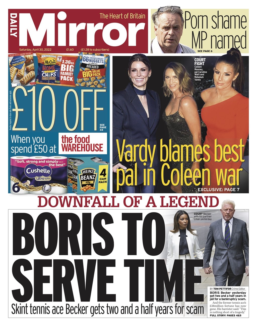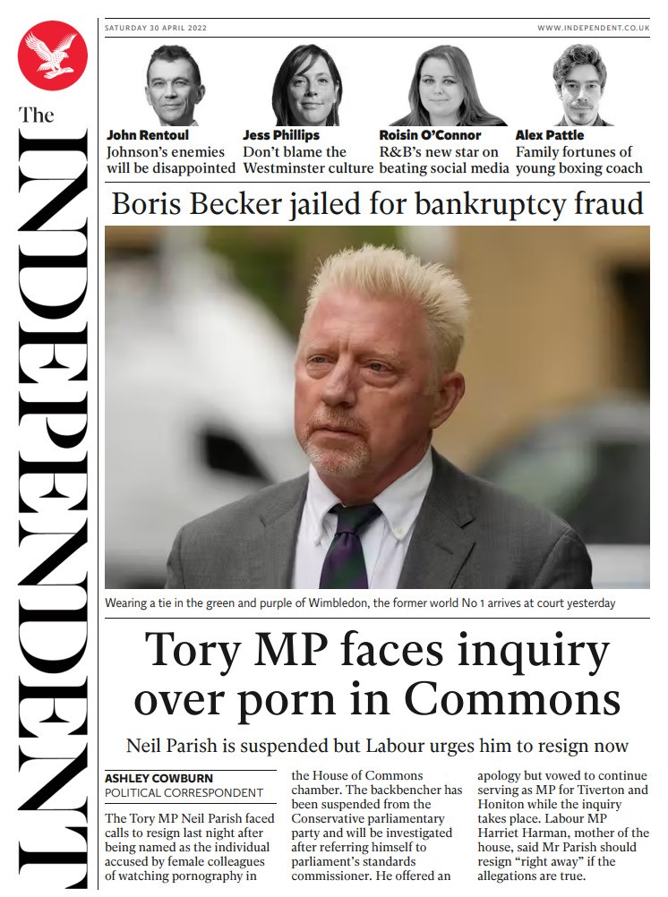 As reported in the Daily Mirror, Boris Becker has been sentenced to two and half years in prison for a bankruptcy scam.