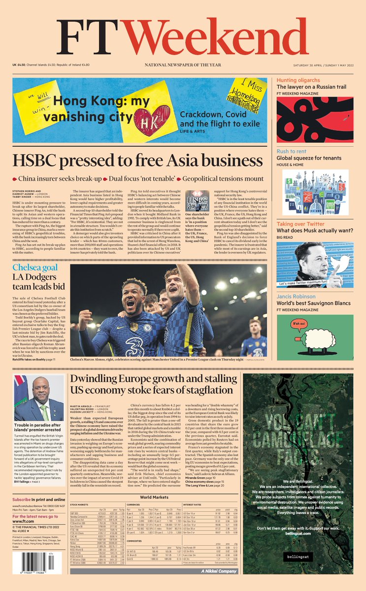 The Financial Times reports that HSBC is facing increasing pressure to break up after its largest shareholder, Chinese insurer Ping An, urged the bank to separate its Asian and western businesses.