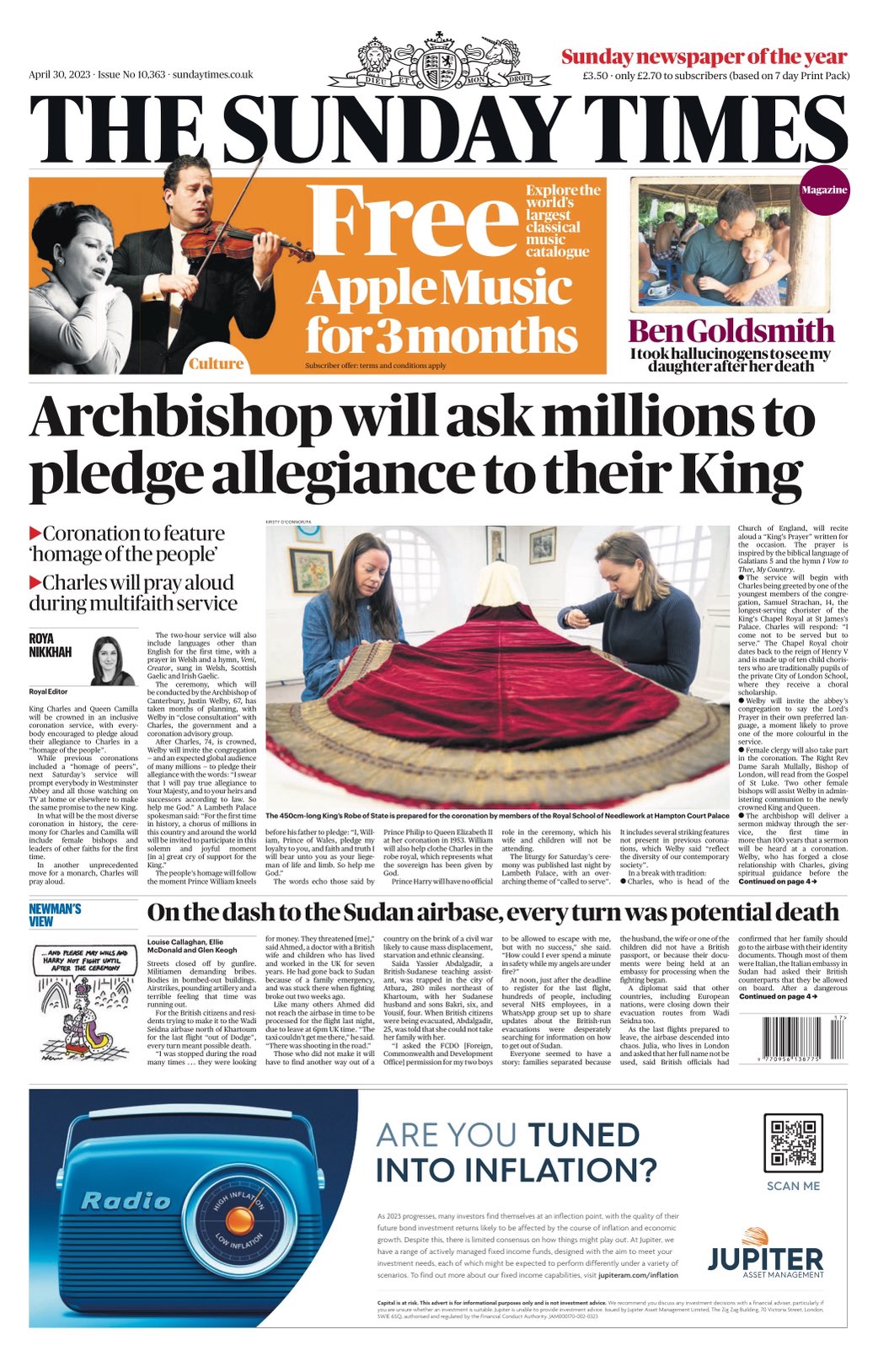 The Sunday Times reveals that during the coronation next week, the Archbishop of Canterbury will request the public to verbally pledge their allegiance to the new king.