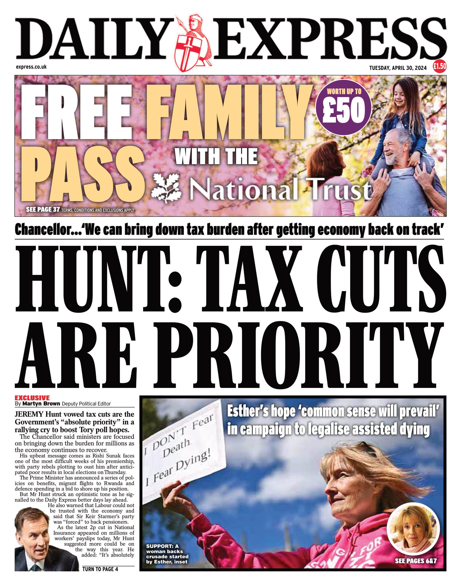 The Daily Express reports on the chancellor’s pre-budget tax reduction plans.