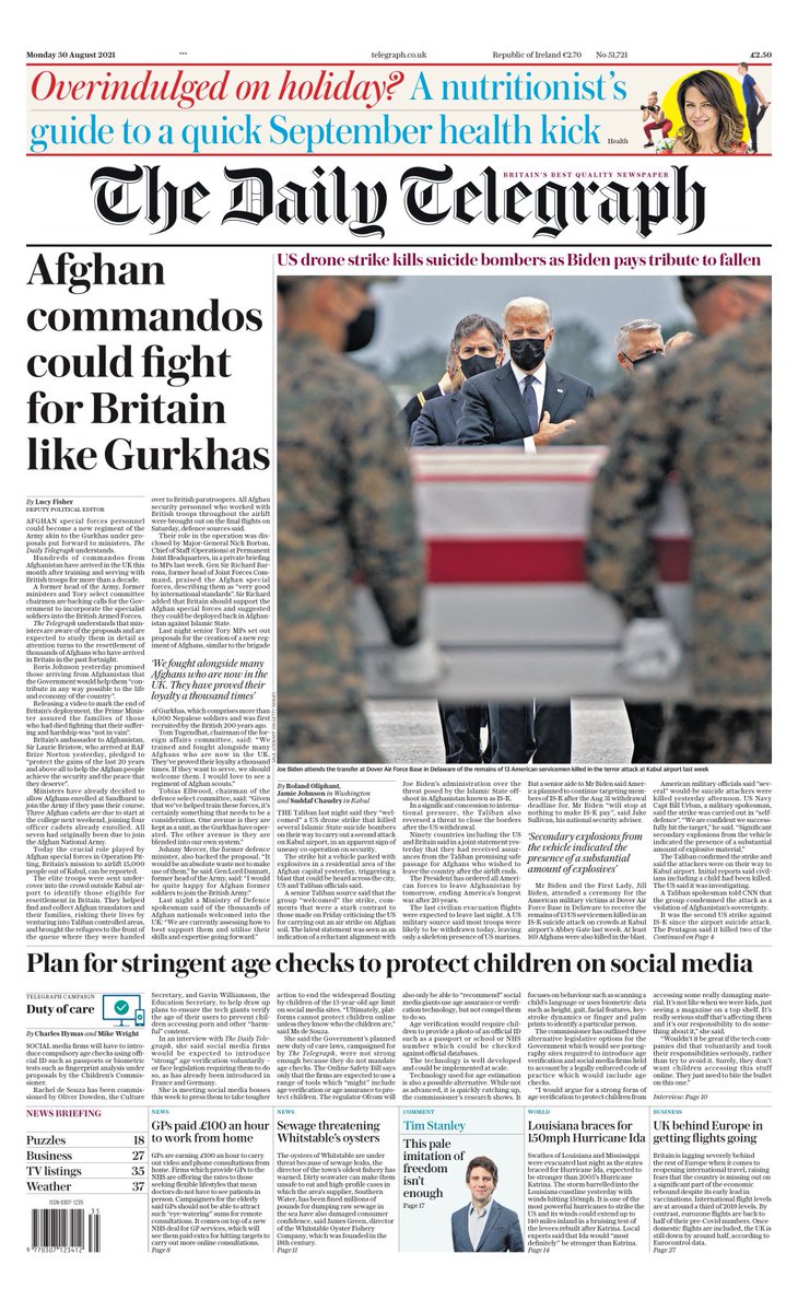 The Daily Telegraph leads with a story that Afghan commandos could fight for the British Army, like Gurkhas from Nepal.