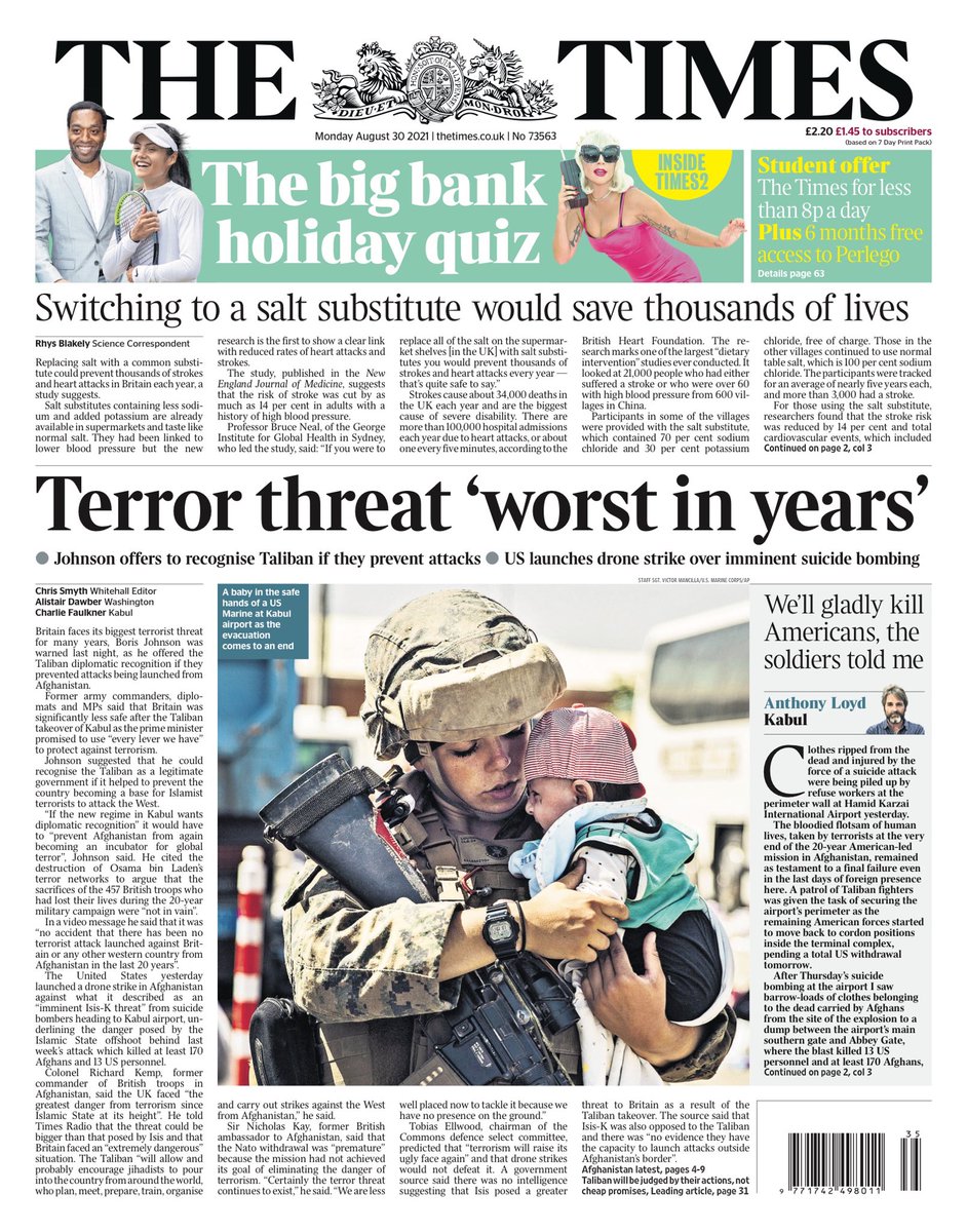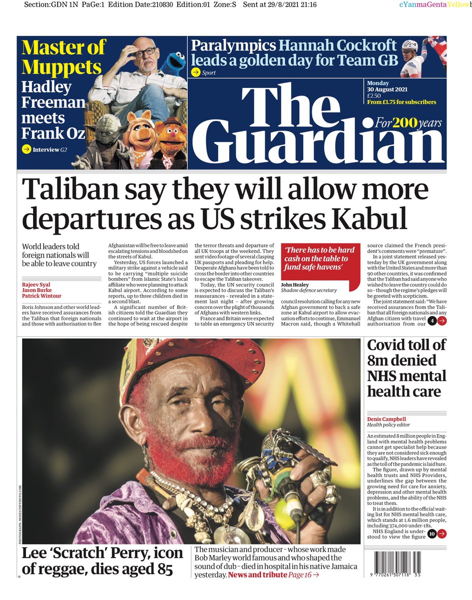 The Taliban saying it will allow more people to leave Afghanistan is the lead story for The Guardian.