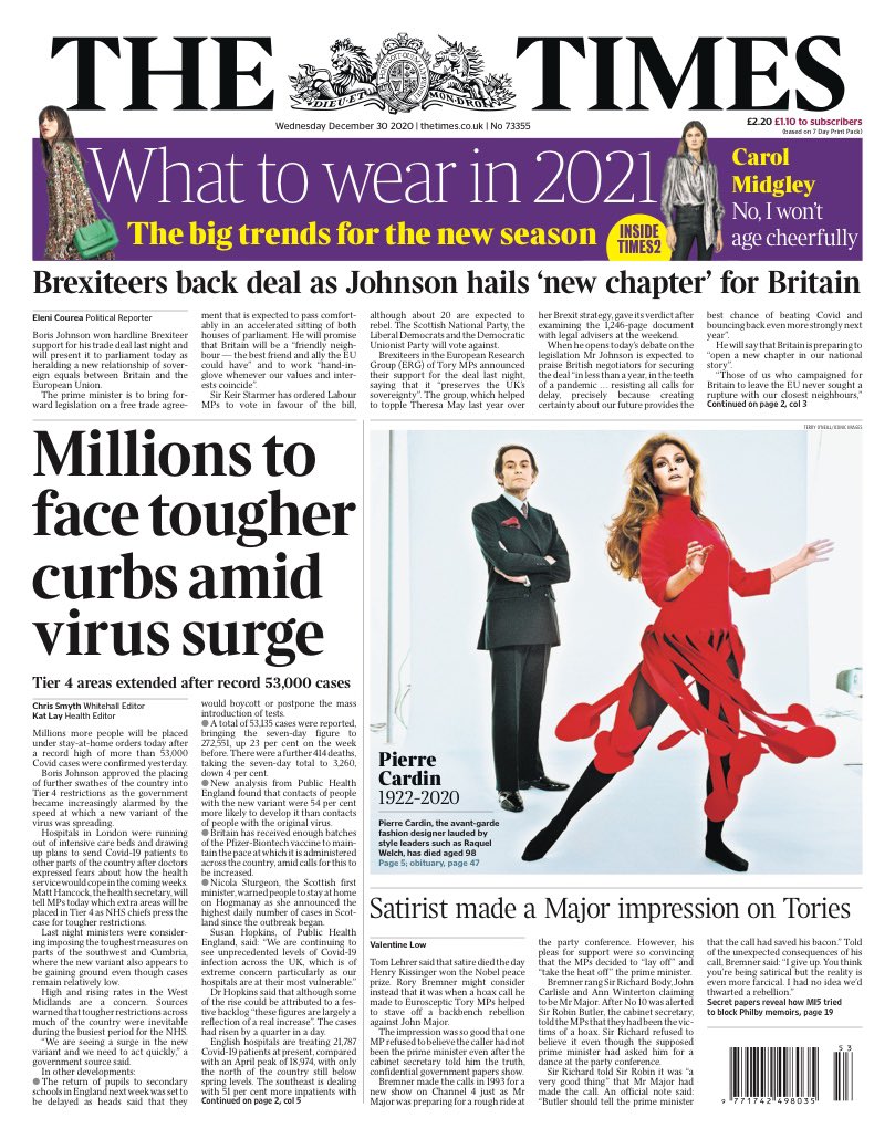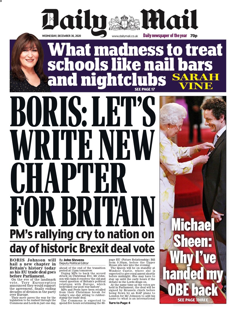 The Daily Express reports that Boris Johnson’s Brexit trade deal with the EU will be backed by Parliament in a “historic resolution” for our country.