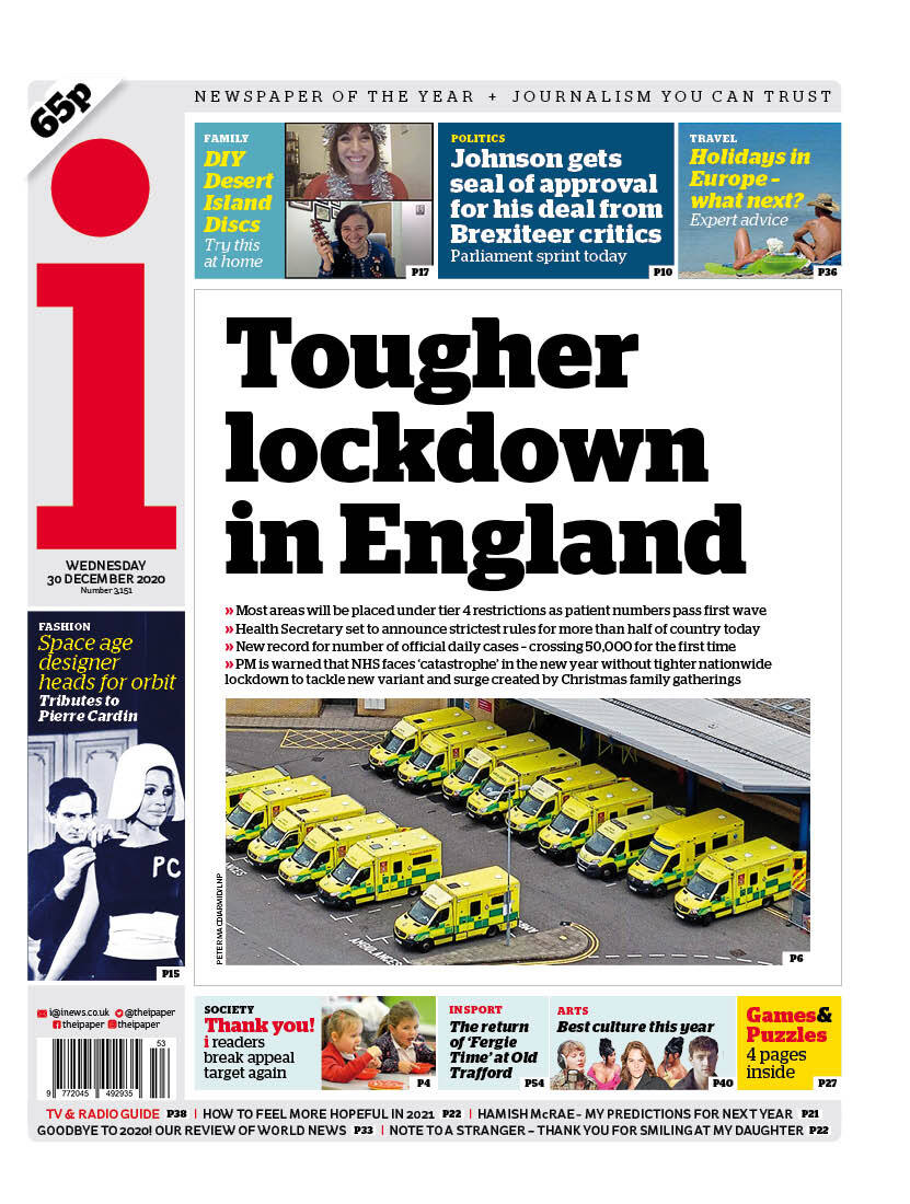 The Independent says new figures from the NHS show there are now more COVID-19 patients in hospitals in England than during the peak of the first wave in April.Read more on this story here.