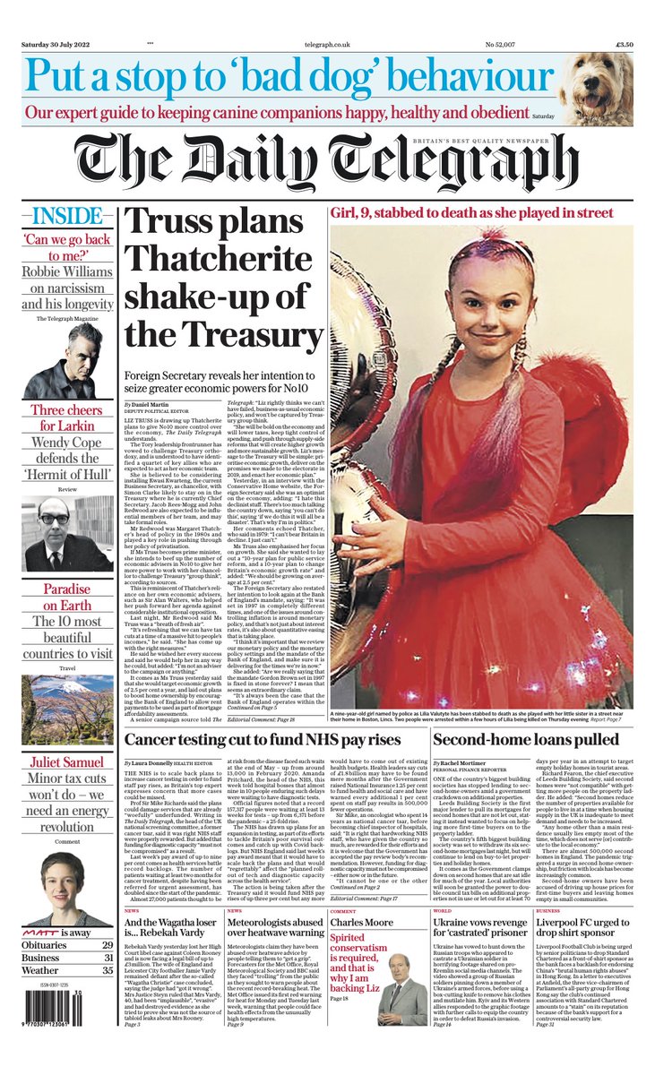 The Daily Telegraph reports that Liz Truss is working on “Thatcherite” economic policies.