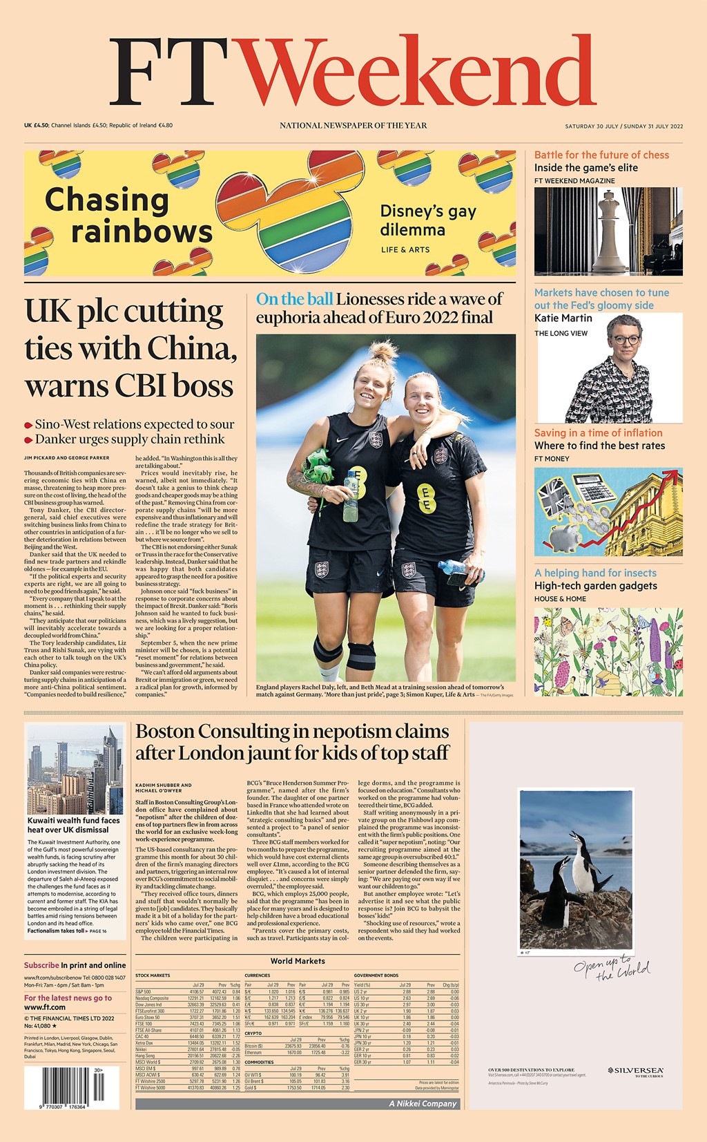 The Financial Times reports that thousands of British companies are severing economic ties with China.