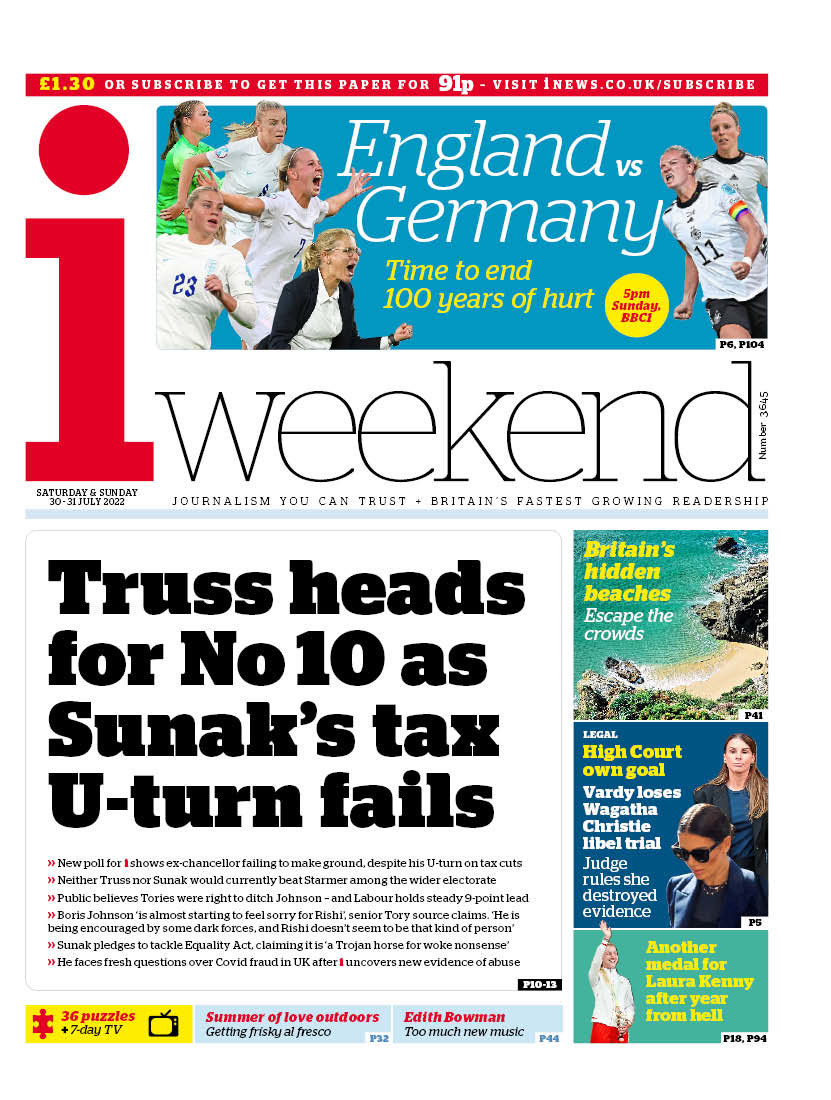The i paper reports that despite a U-turn on tax cuts, Rishi Sunak is failing to gain ground.