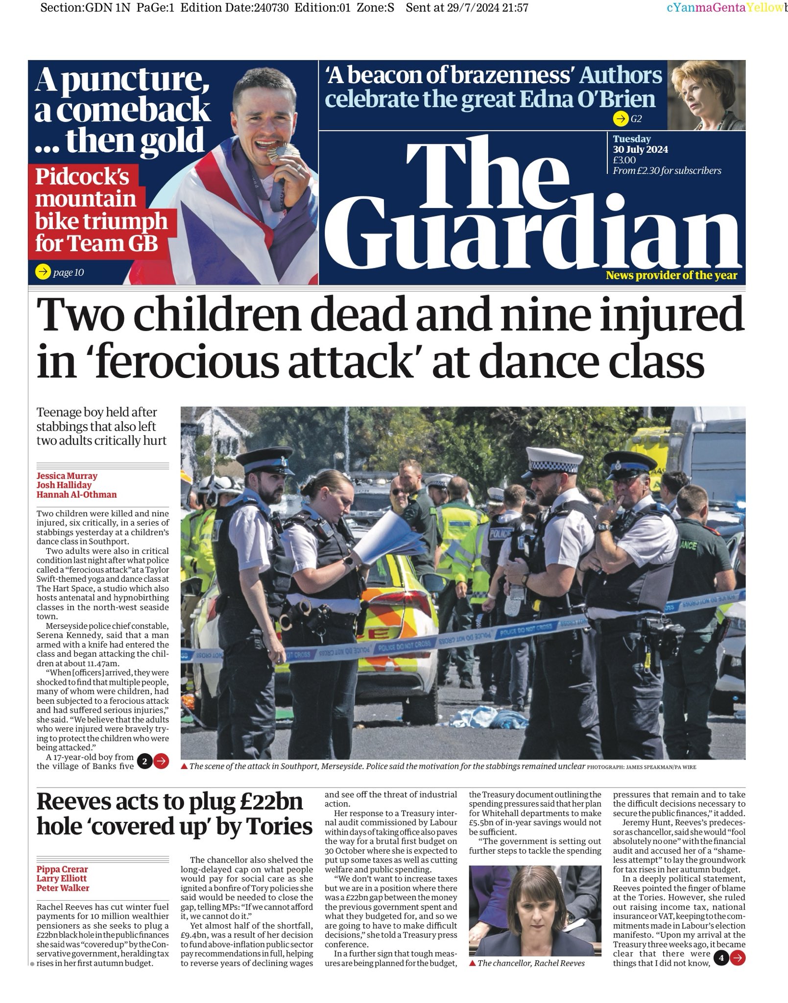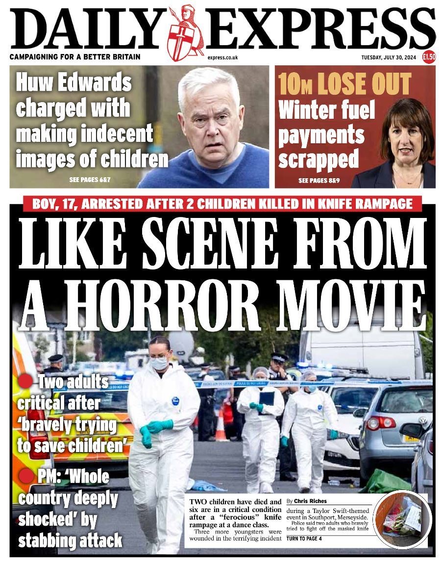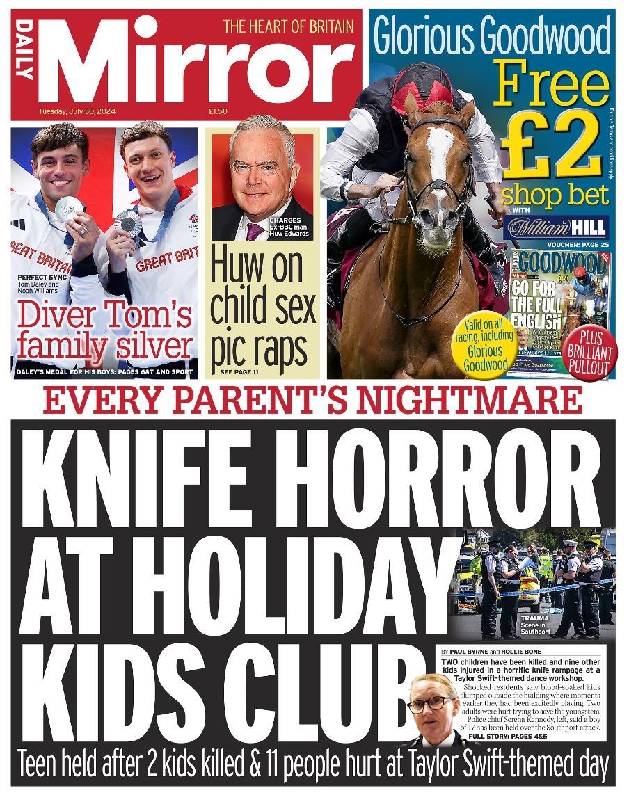 The Daily Mirror reports on a “horrific knife rampage” in Southport.