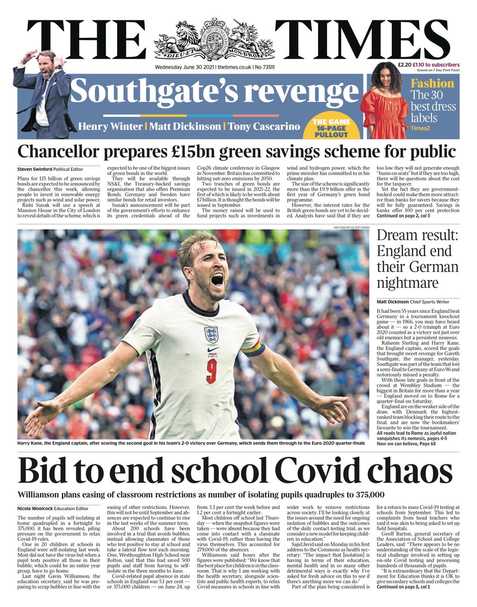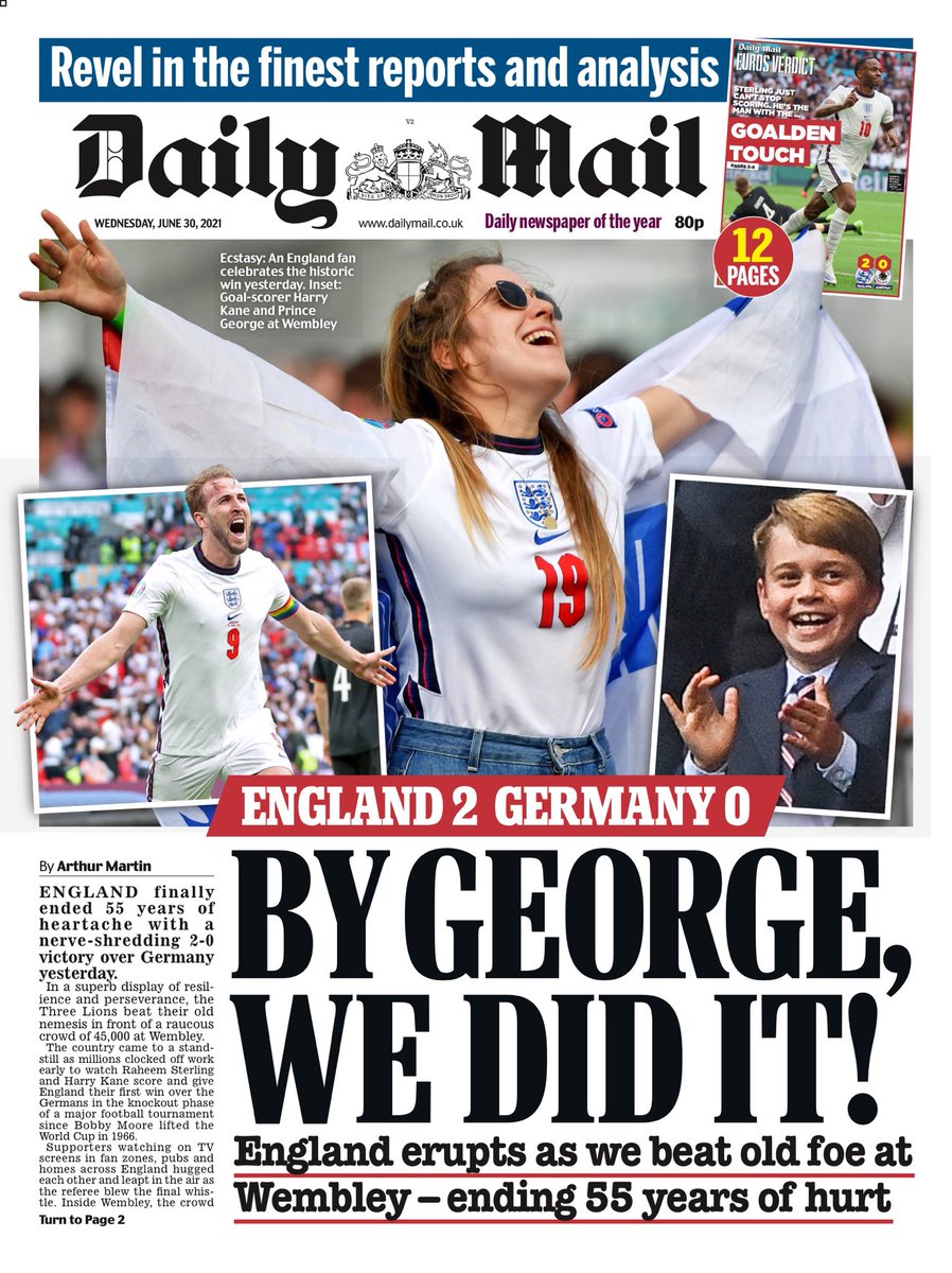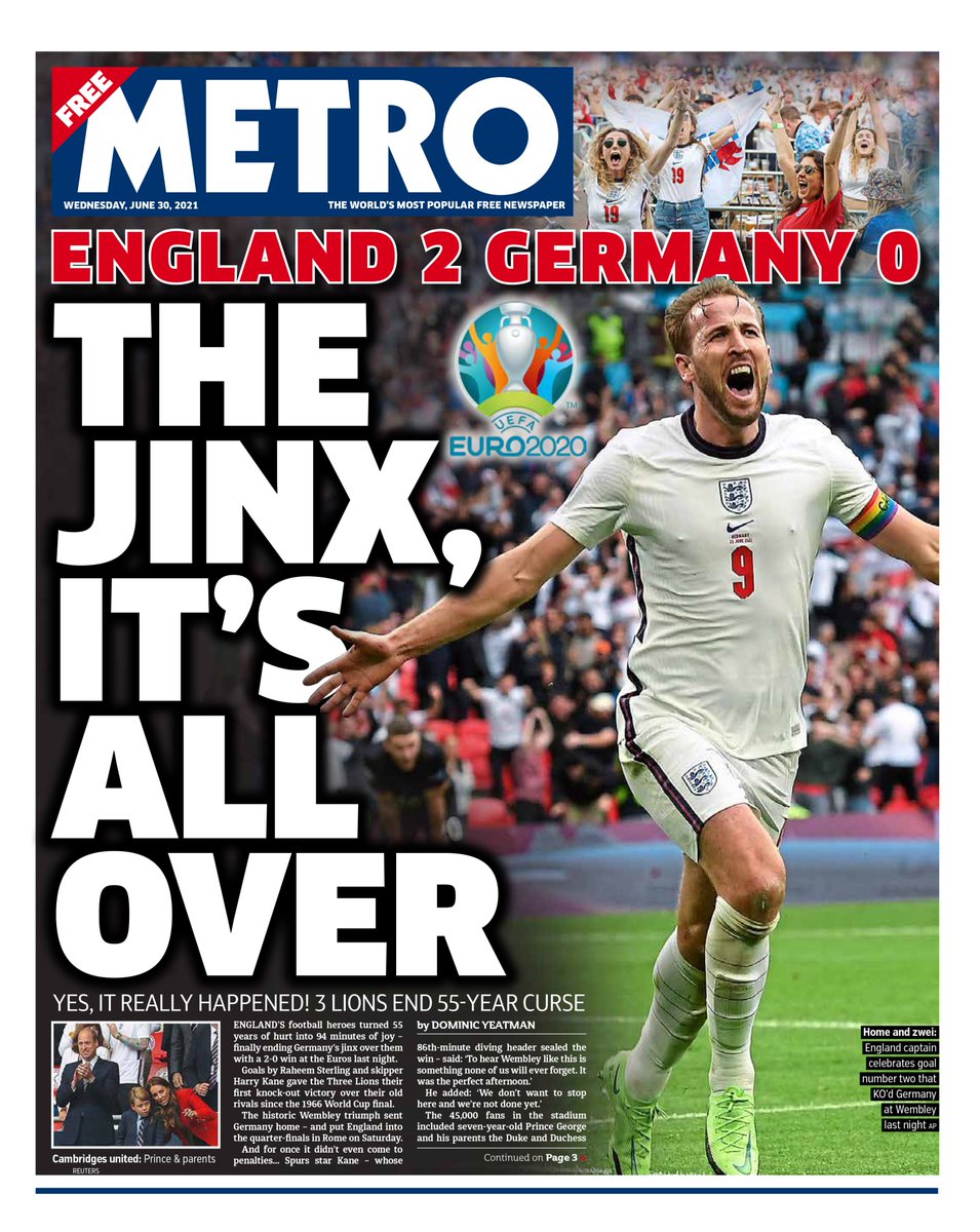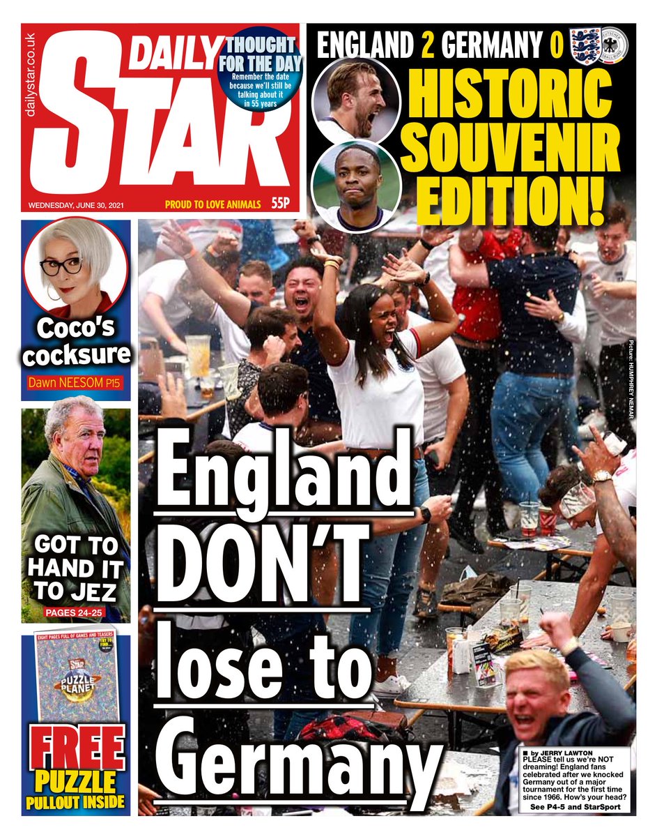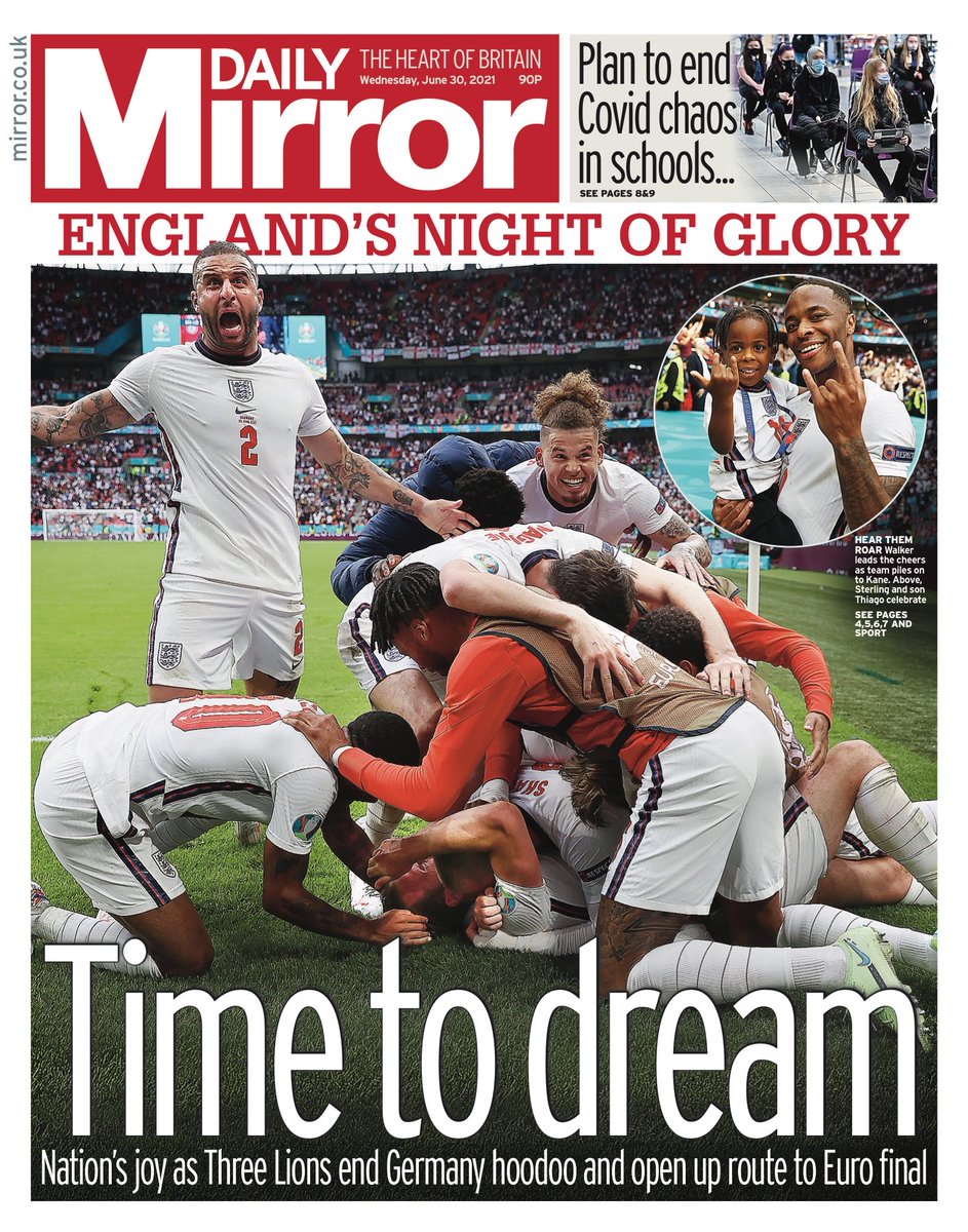 Tomorrow’s Daily Mirror celebrates England’s 2-0 win over Germany at Wembly.