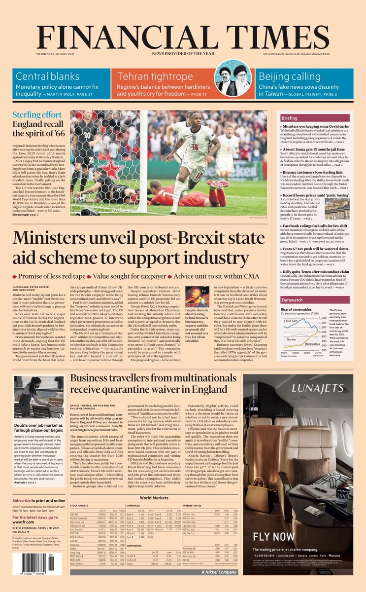 Ministers are set to unveil a post-Brexit state aid scheme to help struggling industries, tomorrow’s Financial Times reports.