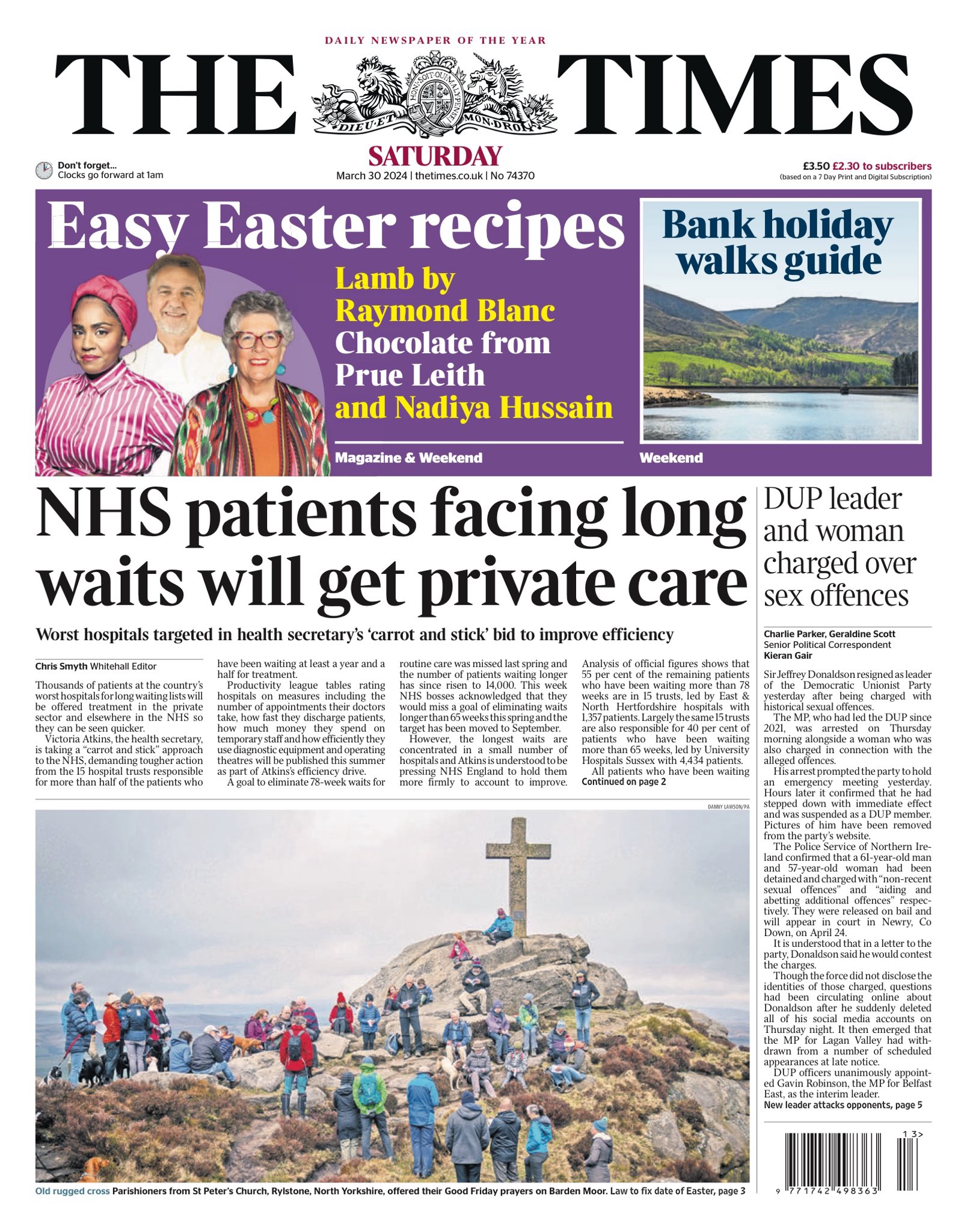 The Times reports that private treatment will be offered to thousands of long-waiting NHS patients.