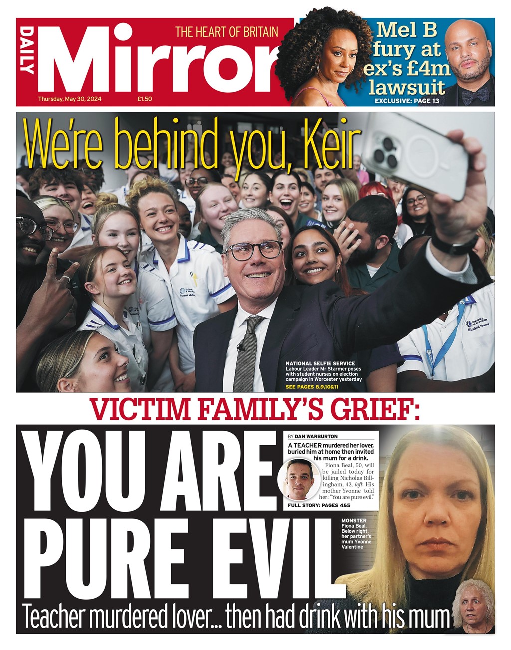 The Daily Mirror’s front page features Labour leader Sir Keir Starmer with student nurses.