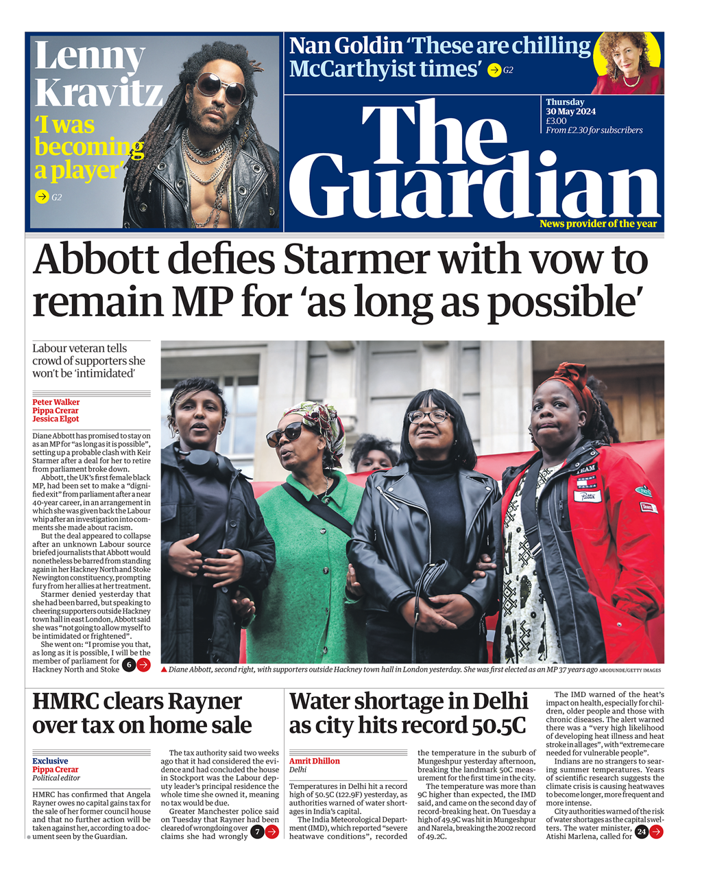 The Guardian highlights veteran MP Diane Abbott’s commitment to her role for an indefinite period.