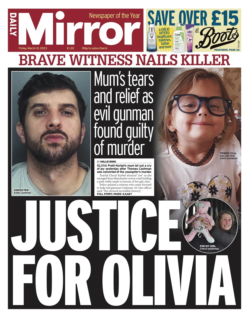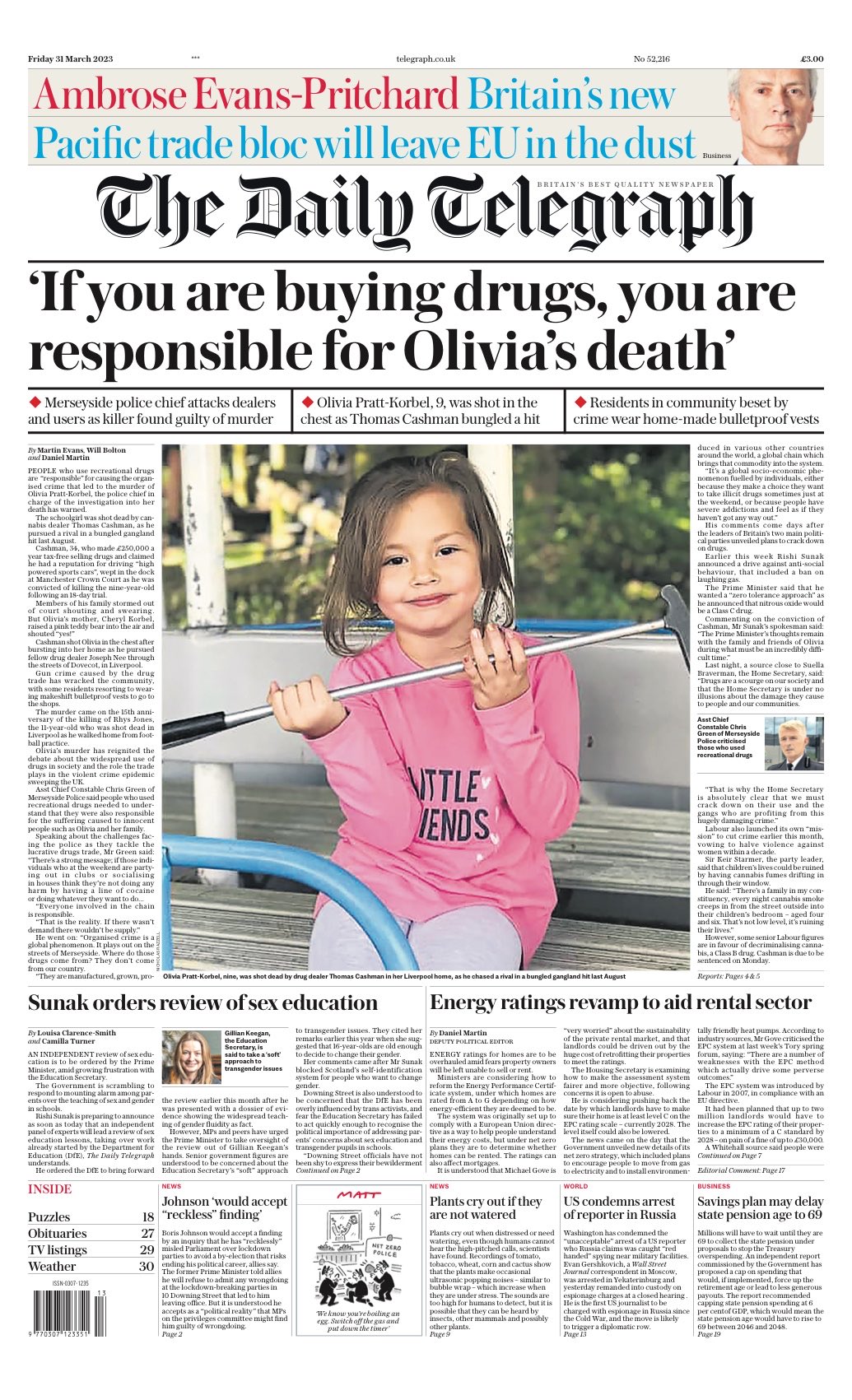 The Daily Telegraph carries a quote from a Merseyside police assistant chief constable: “If you are buying drugs, you are responsible for Olivia’s death.” .”