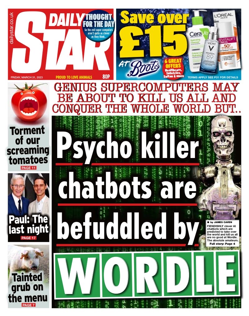 Daily Telegraph Front Page 31st of March 2023