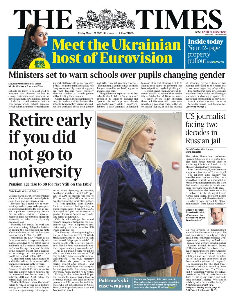 The Times reports that a government review of pension policy recommends manual workers and those without university degrees should be able to claim their state pensions earlier than graduates.