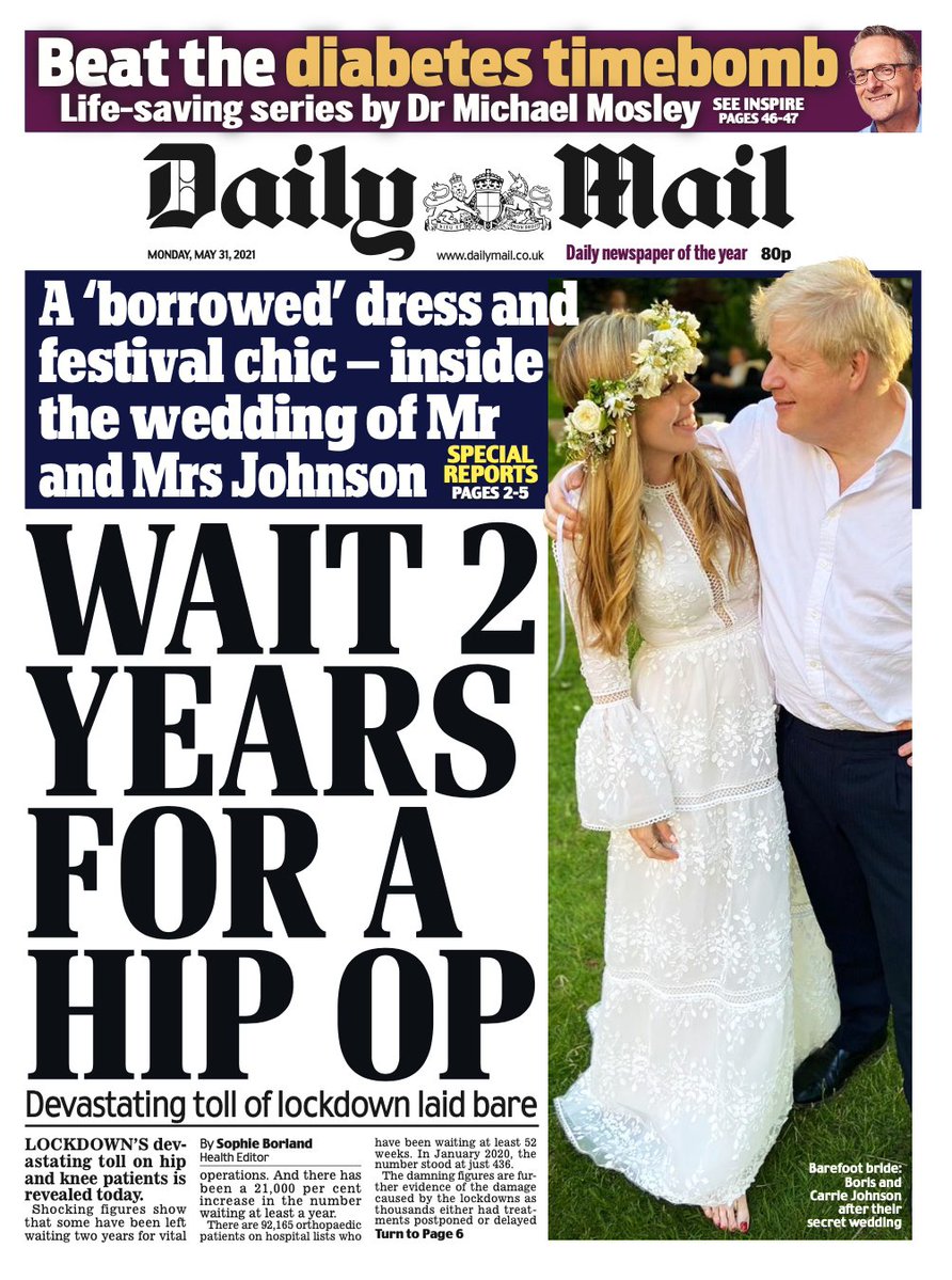 The Daily Mail reports that there has been a 21,000% increase in the number of hip and knee patients waiting at least a year for operations.