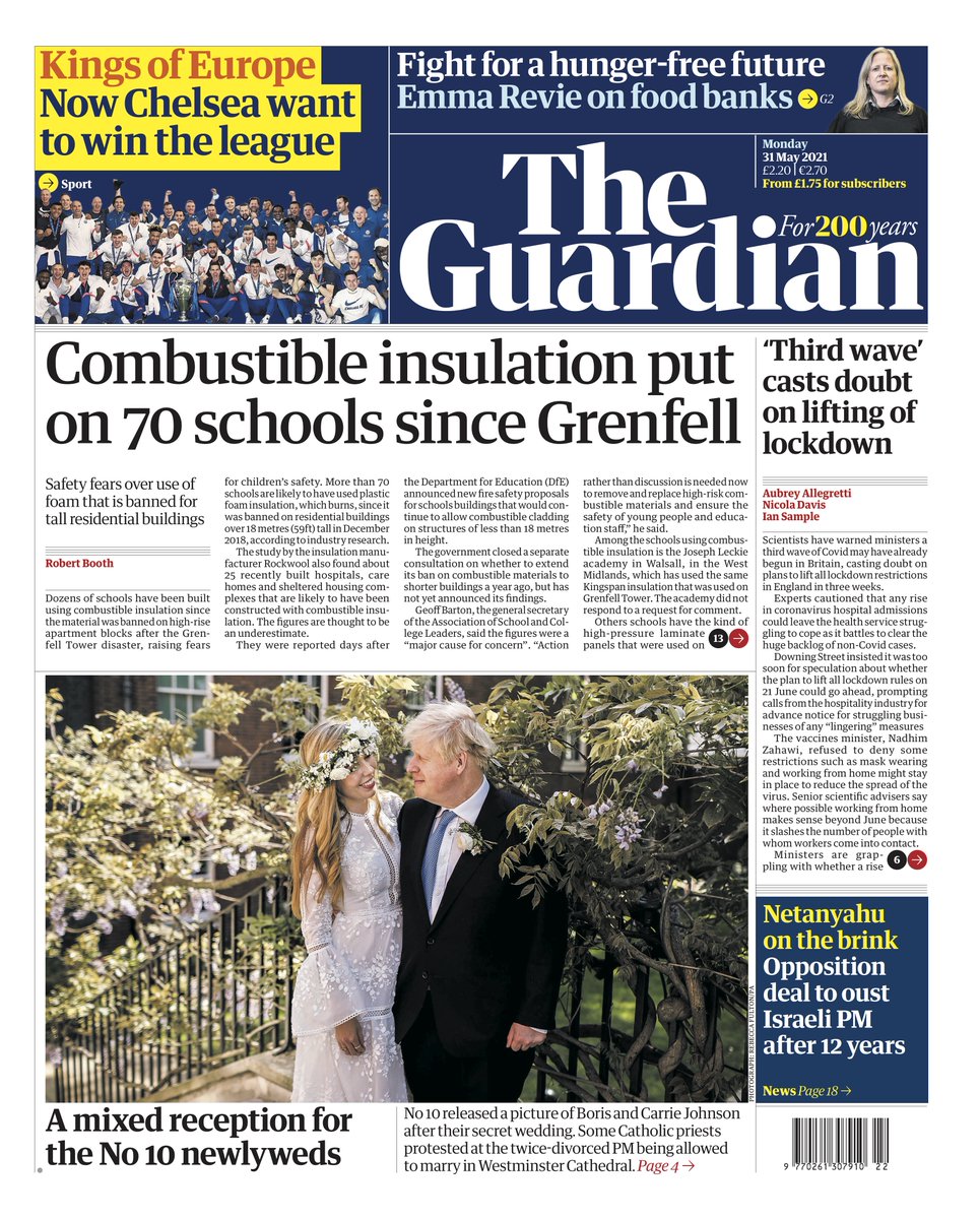 The government wants everyone in the top nine priority groups to be protected by two doses of a COVID-19 vaccine before 21 June – that’s on the front of The Times.