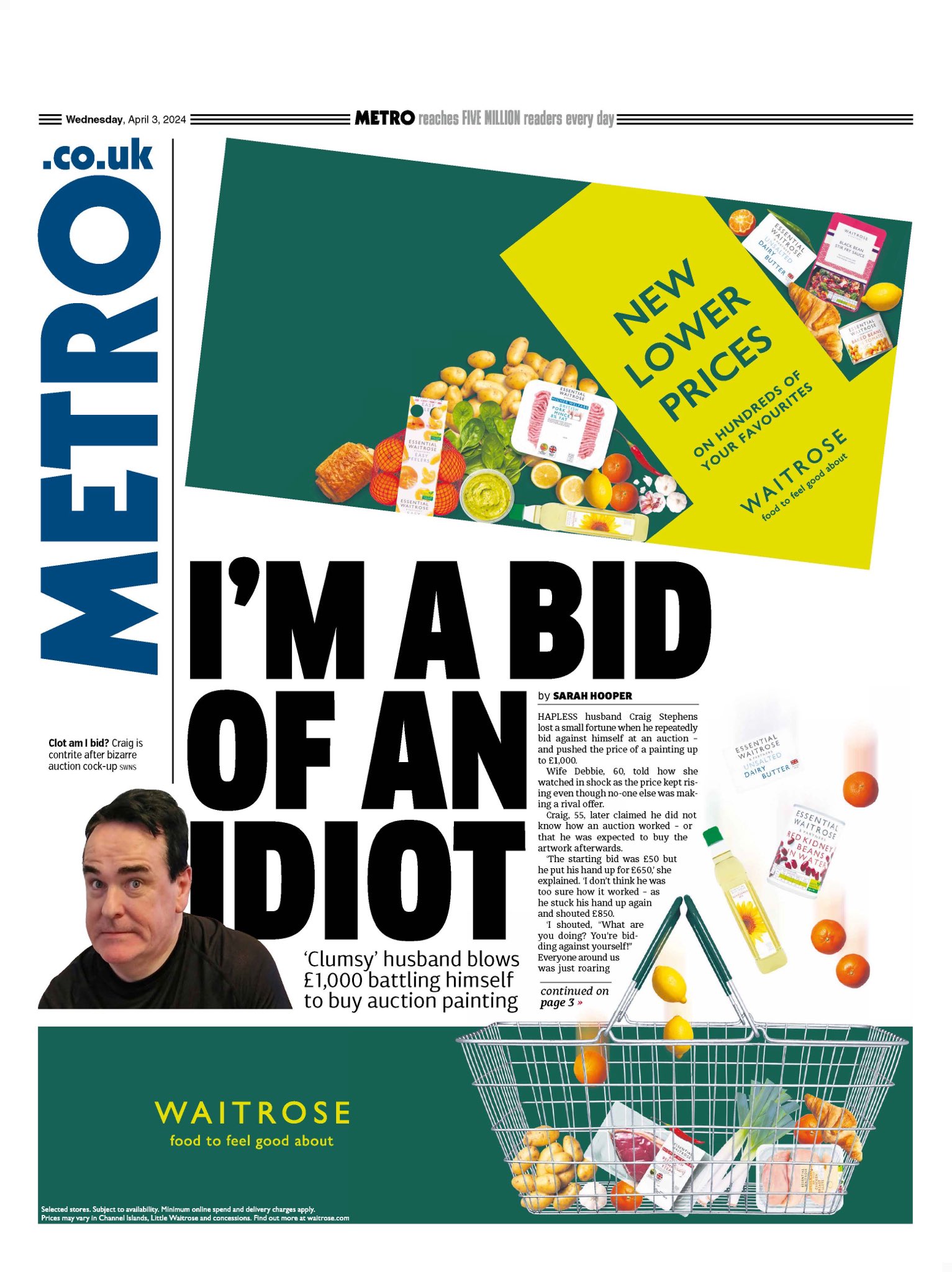 The Metro reports on a man who foolishly bid against himself at an auction, inflating the price of his own painting to £1,000.