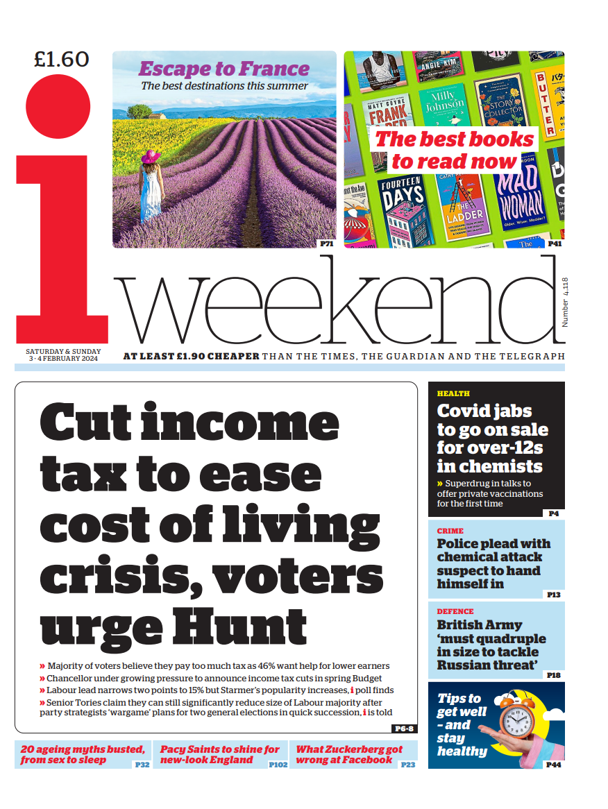The i weekend reports that most voters feel overtaxed, increasing pressure on the chancellor for spring Budget cuts.