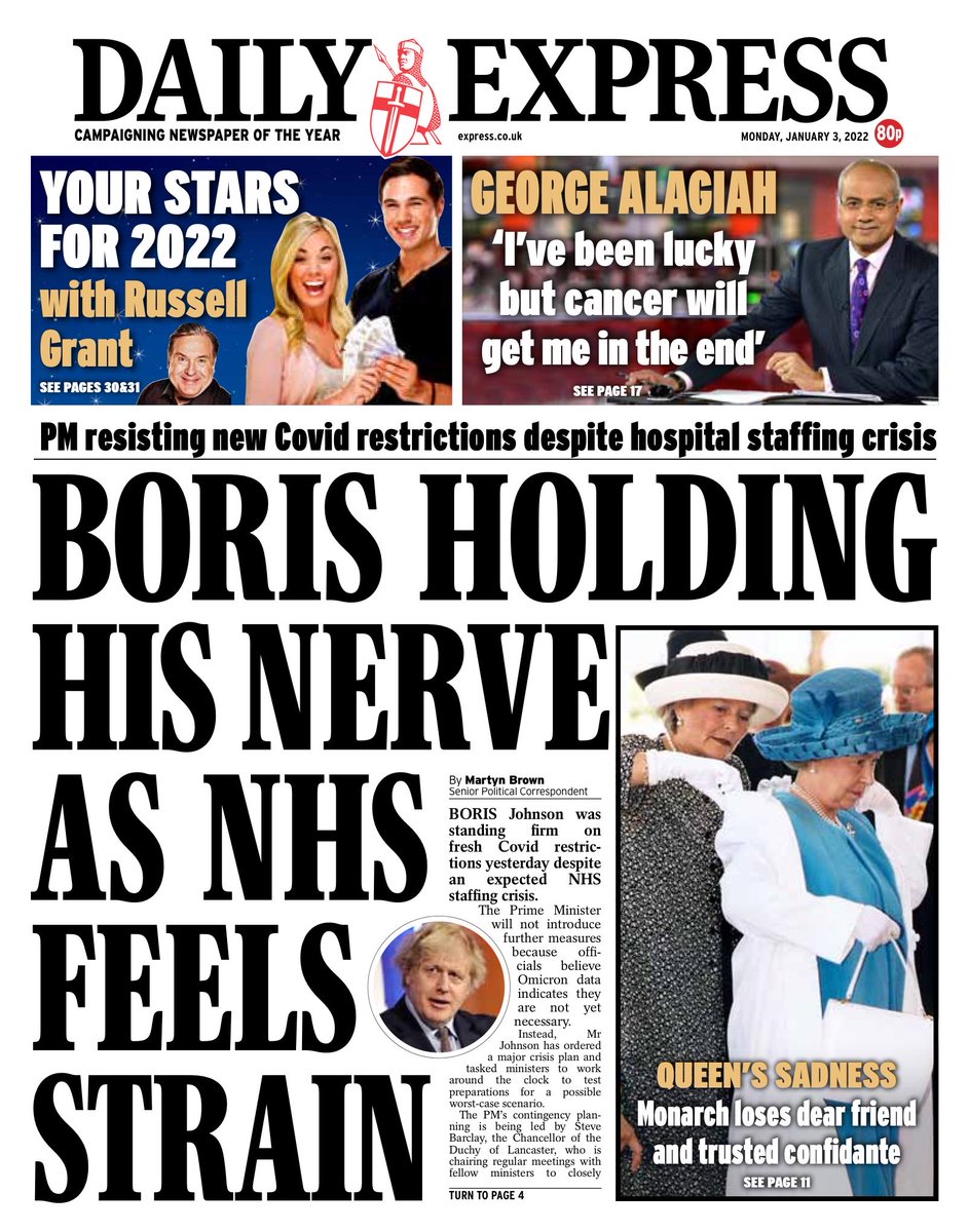 Prime Minister Boris Johnson is resisting new COVID restrictions despite an expected NHS staffing crisis, according to the Daily Express.