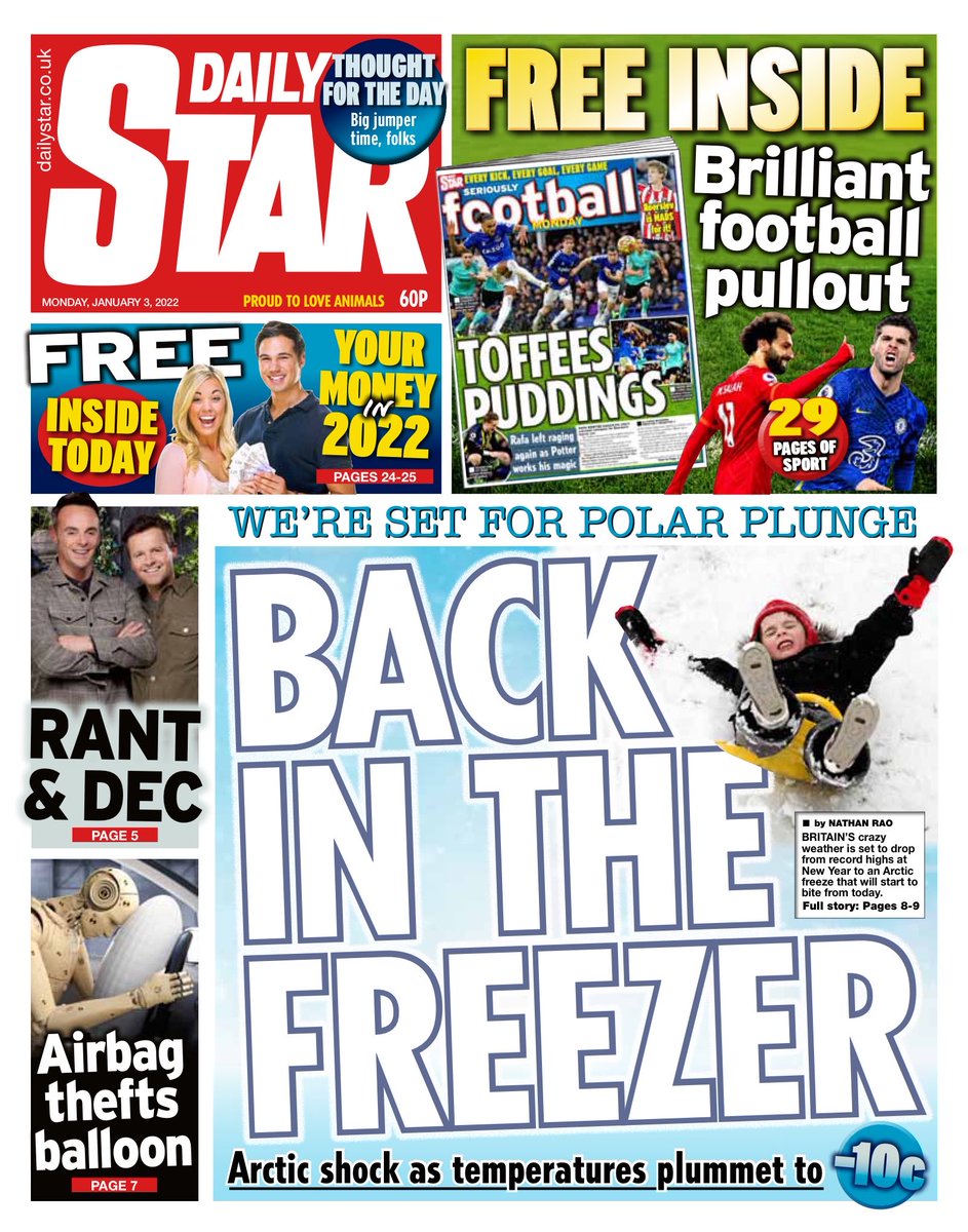 Britain’s weather is set to drop from record highs to an Arctic freeze, writes the Daily Star.