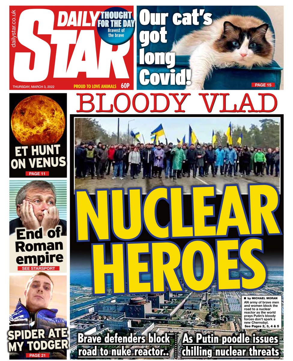 The Daily Star reports that brave Ukrainians are blocking the Russians from reaching a nuclear reactor.