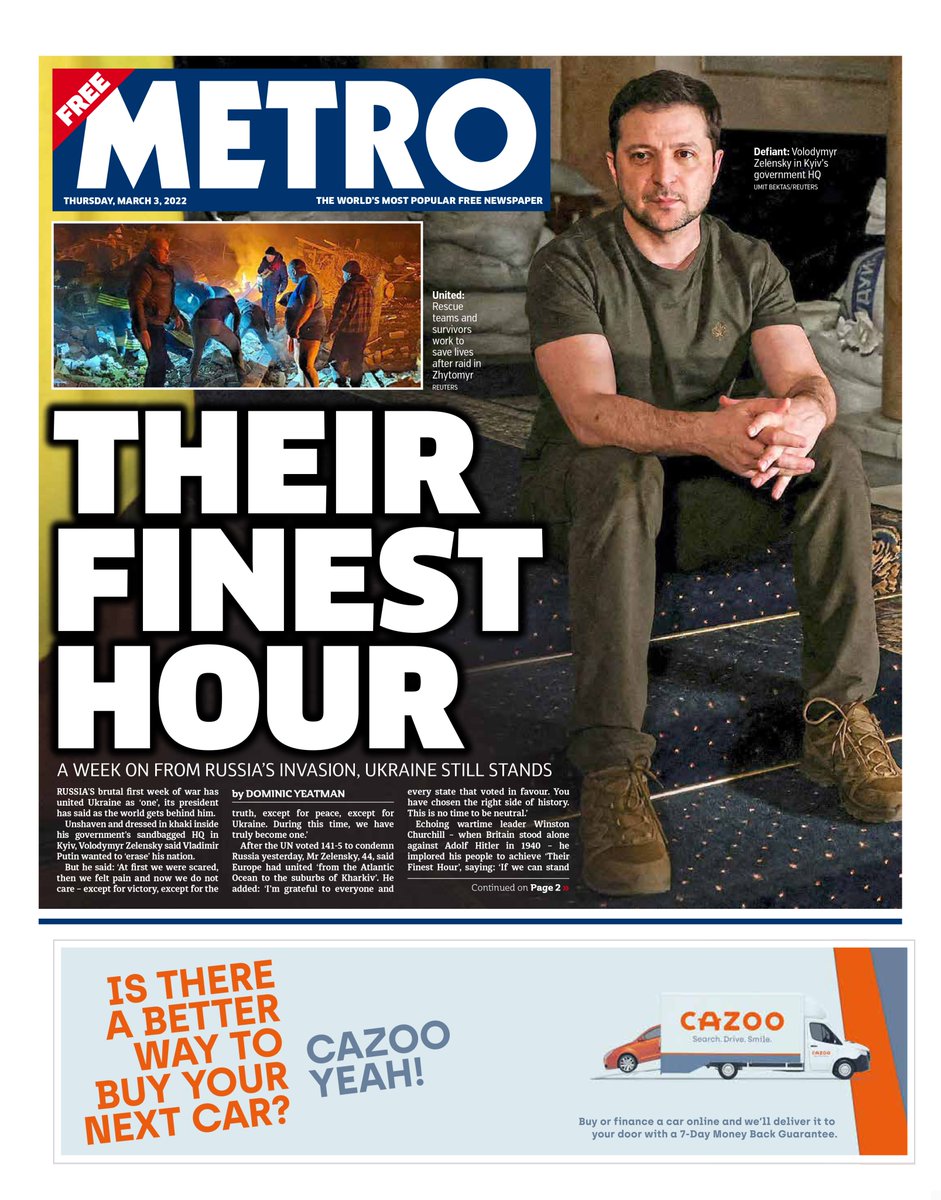 Metro praises the bravery of Ukrainian who are defending their country against the Russian invasion.
