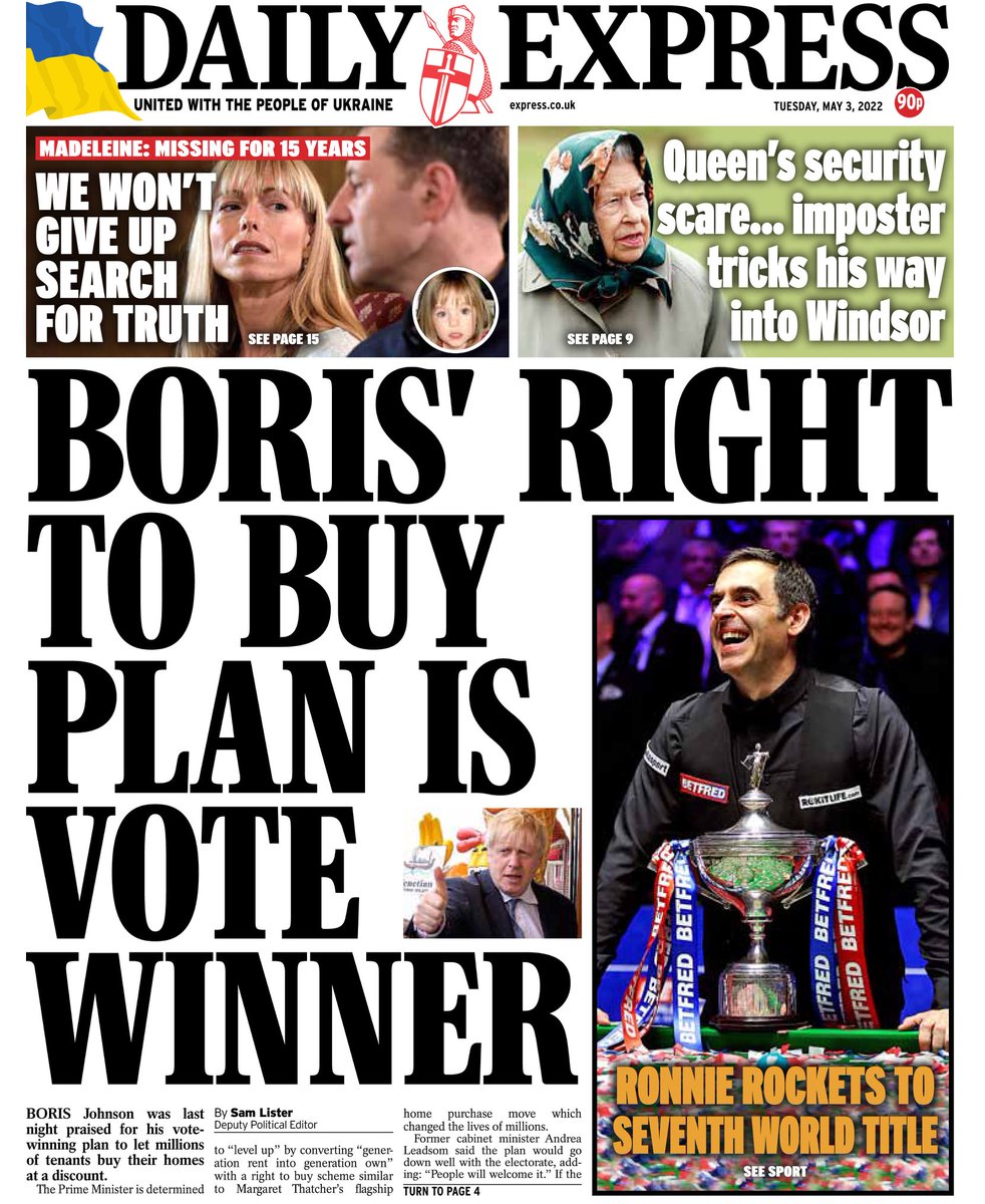 The Daily Express hailed Boris Johnson’s vote-winning plan to allow millions of tenants to buy their homes at a discount