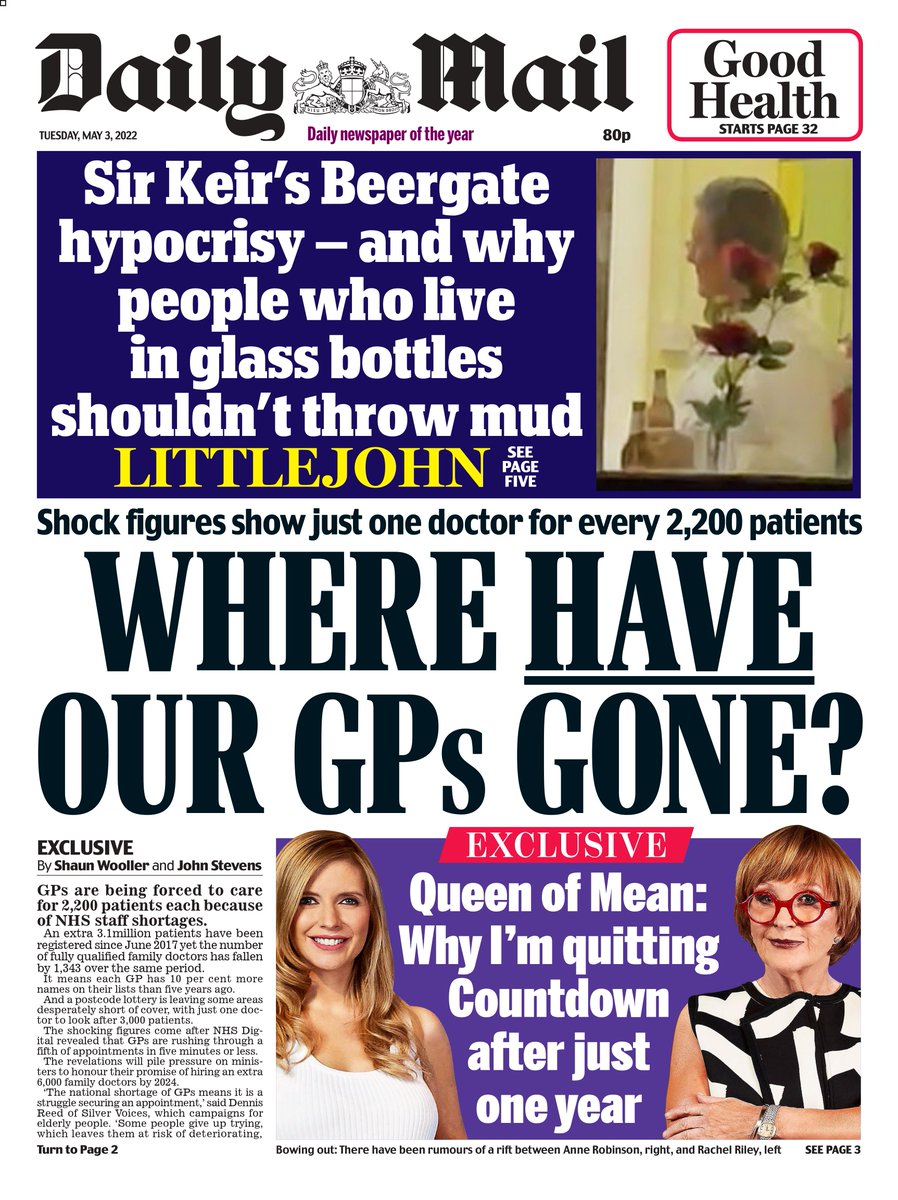 NHS staff shortages are forcing GPs to care for 2,200 patients each, according to the Daily Mail.