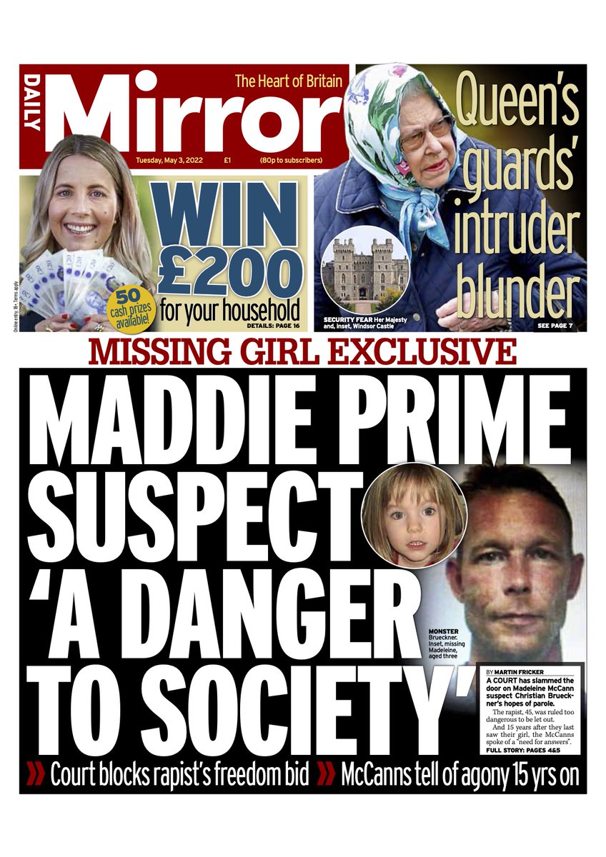 The Daily Mirror reports that a court has rejected the parole hopes of the man accused of killing Madeleine McCann.