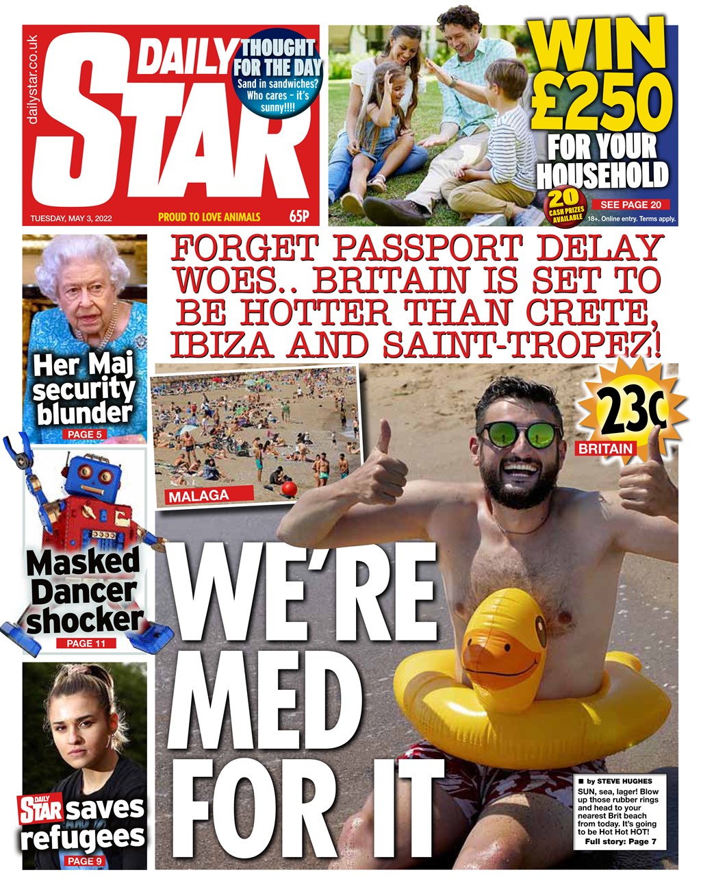 The Daily Star reports that Britain will be hotter than Crete, Ibiza, and Saint-Tropez.