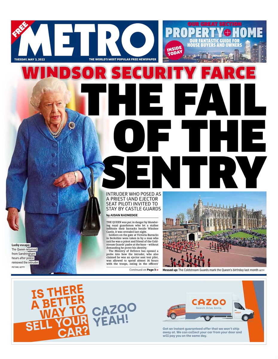 “Blundering royal guardsman” let a stalker into Windsor Castle, according to the Metro.