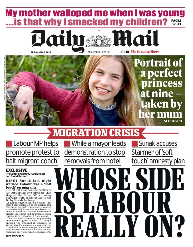The Daily Mail reports on the Prime Minister’s claim that Labour is lenient on immigration issues.