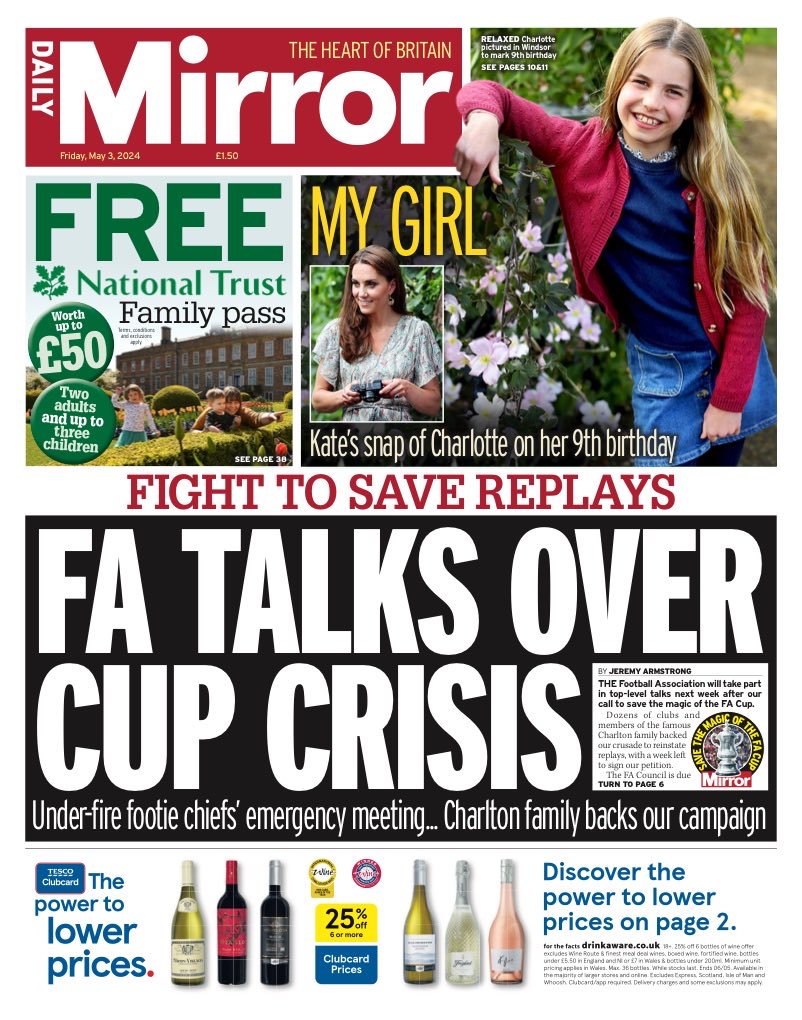 The Daily Mirror reports on the FA’s upcoming high-level discussions about their decision to end replay matches.