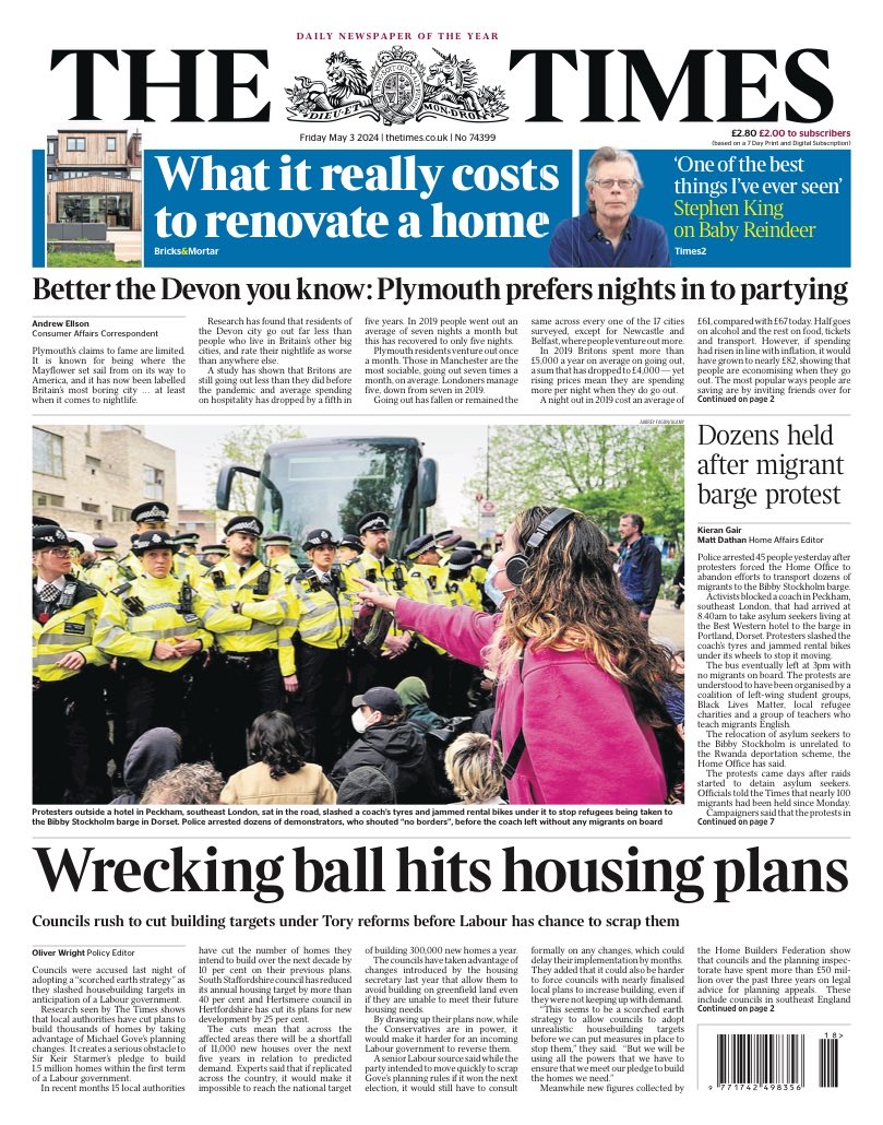 The Times reveals that councils are hastily reducing housebuilding targets in anticipation of a potential Labour win in the upcoming general election.