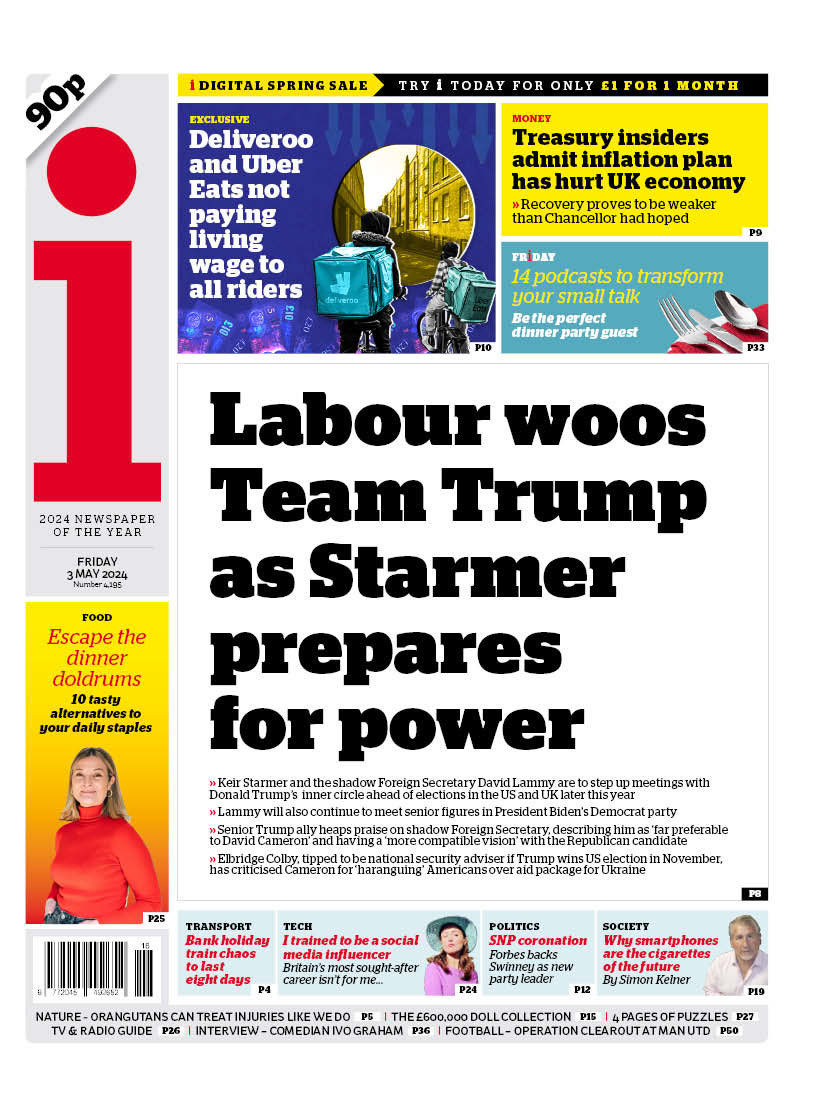 “Labour engages with Trump’s circle before UK and US elections, says i newspaper.