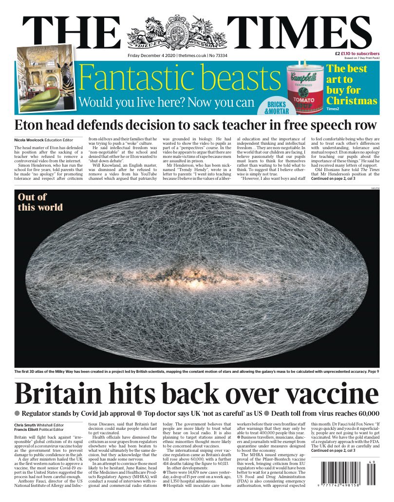 The education secretary’s comments that the UK got a COVID-19 vaccine first because “we’re a much better country” than others – and the associated backlash – have made the front of the Metro.