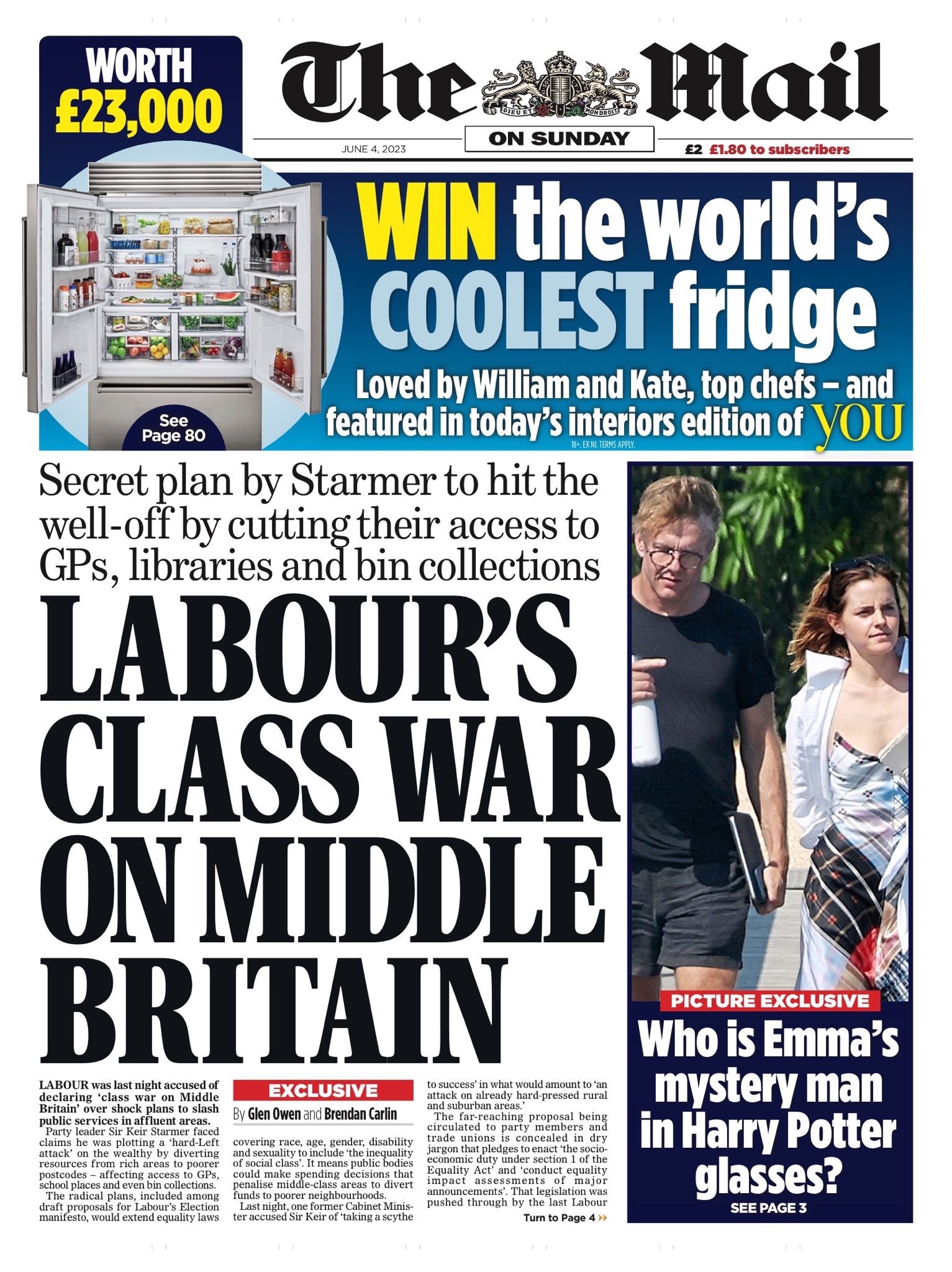 In a story by The Mail on Sunday, it is claimed that Labour’s alleged “class war on Middle Britain” might jeopardise access to school places, GPs and bin collections.