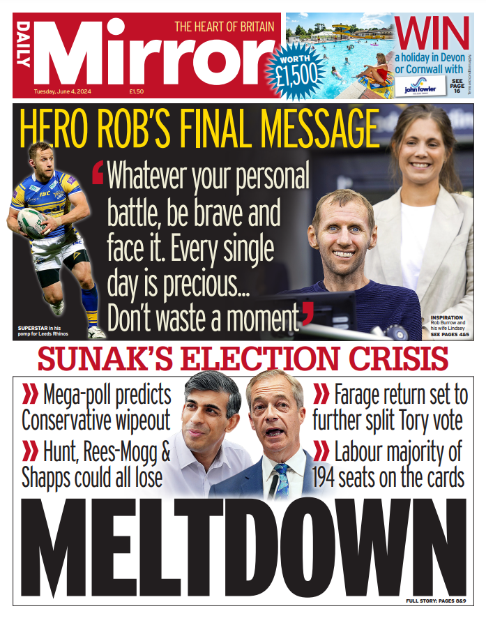 The Daily Star highlights the poignant final message from rugby legend Rob Burrow, who urged bravery before succumbing to motor neurone disease.