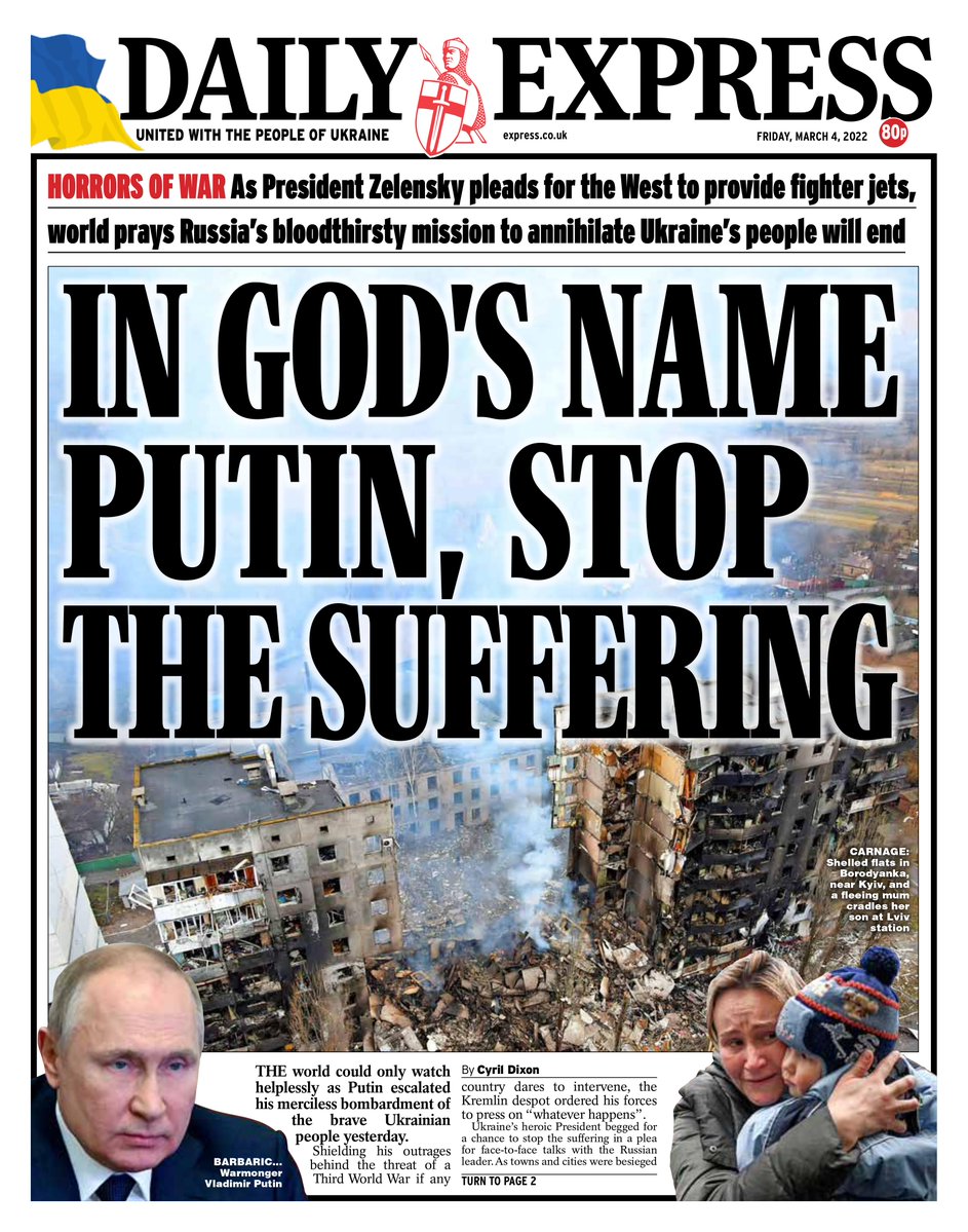 The Daily Express calls on Putin to stop the suffering as his bombardment of Ukraine continues.