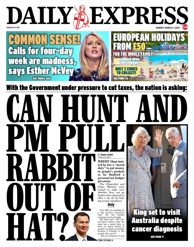 Daily Express Front Page 4th of March 2024