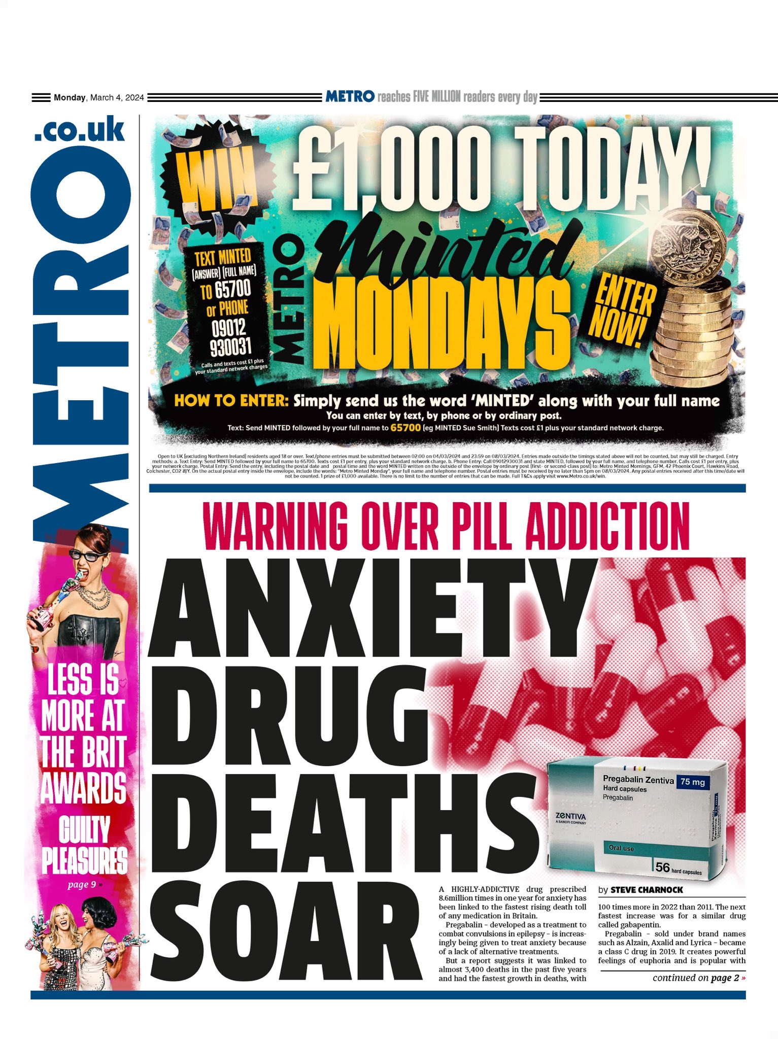 The Metro reports on a prescription anxiety drug being linked to nearly 3,400 deaths in the past five years.